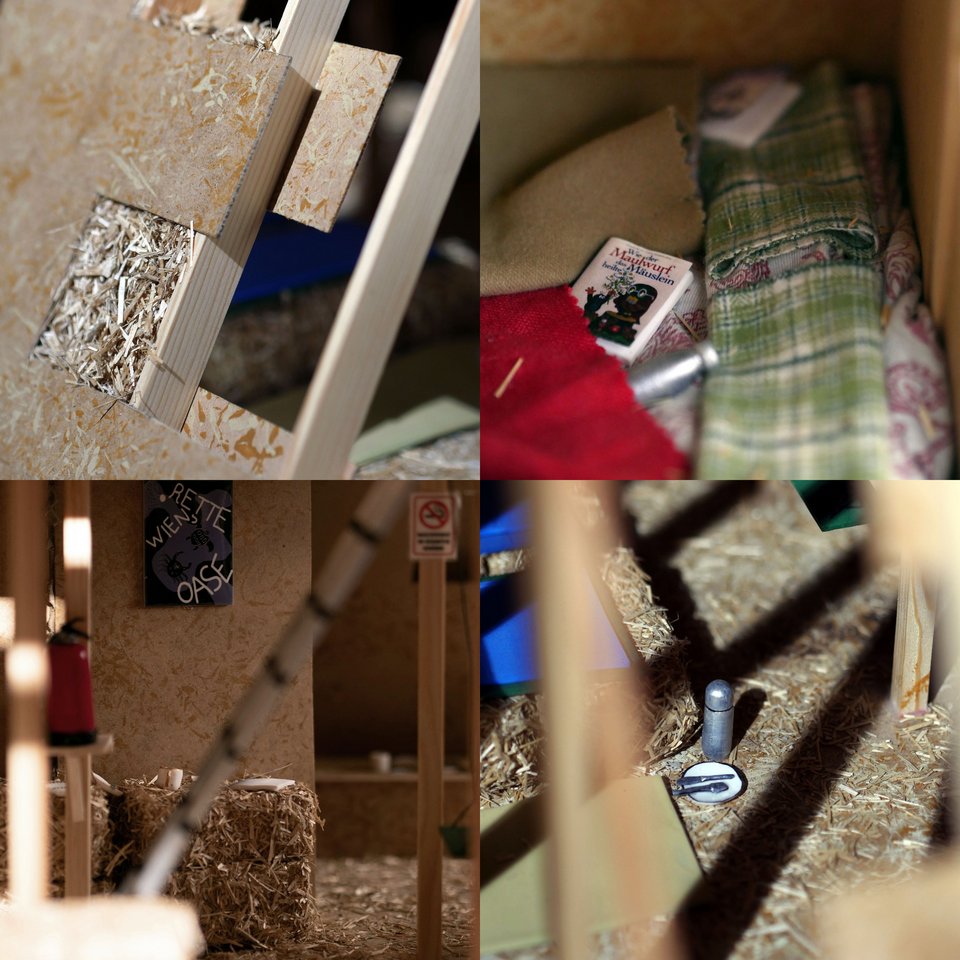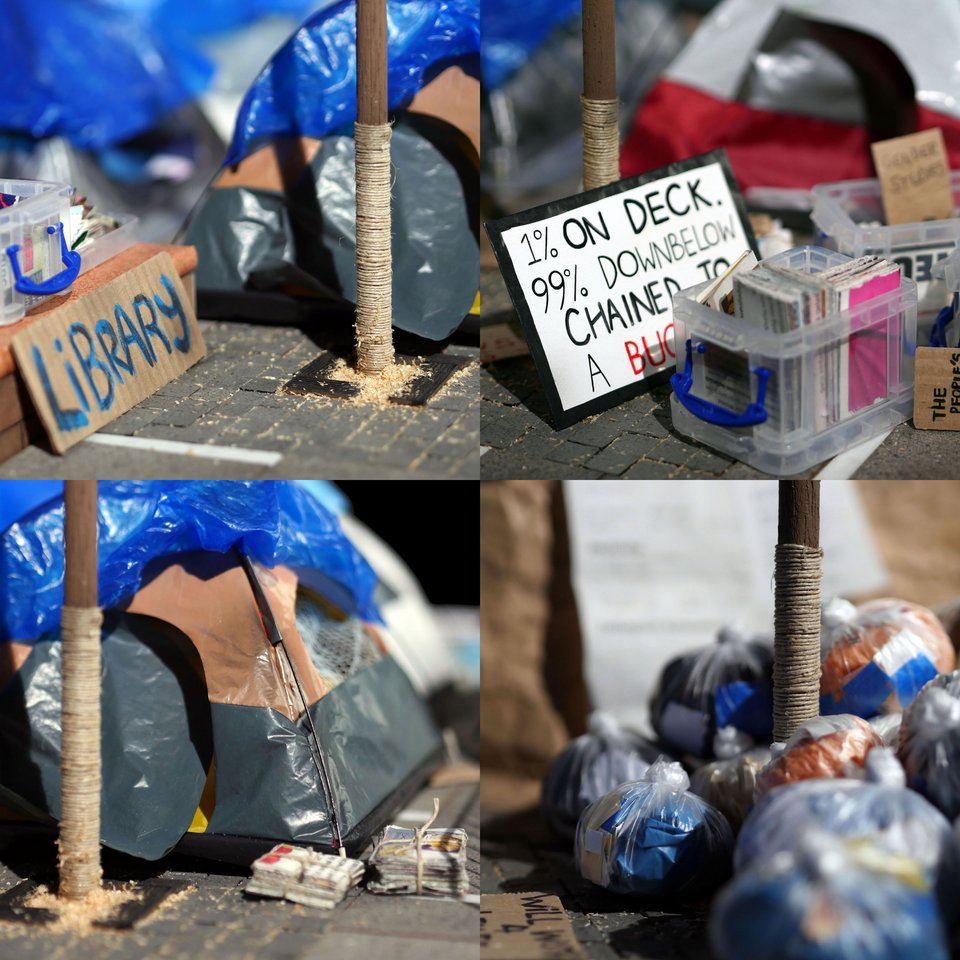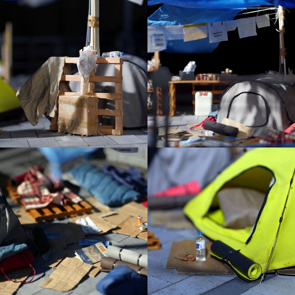 Die neun Dioramen im Maßstab 1:10 geben in Szenen mit 10 x 10 Metern Seitenlänge Einblicke in die baulichen Strukturen ausgewählter Protestcamps.