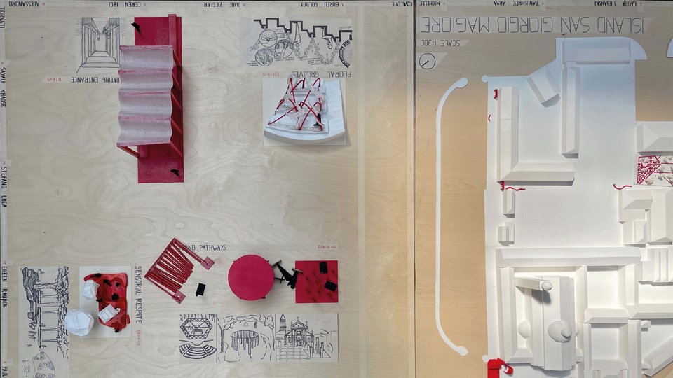 Die Erkenntnisse hieraus wurden in den Entwurfsvorschlägen für San Giorgio verarbeitet. So bauen die vorgeschlagenen Konstruktionen auf Materialien auf, die nachwachsen oder einen hohen Wiederverwertungsanteil besitzen (re-use) – Myzelium, Cortenstahl, Hempcrete (Hanfkalk), Laterit Stone, Lehm, Bambus und Kork. Die Recherche ist Teil des Entwurfs-Workshops. Die Aufgabe für San Giorgio wurde von der Fondazione Cini, von Francesca Salatin, Riccardo Varini und einem Gast, Giulia, die selbst nie sehen konnte und deshalb authentisch über andere Wahrnehmungsformen berichten konnte, beschrieben. Die Studenten und Studentinnen konnten bei einem Spaziergang über die Insel individuelle Eindrücke sammeln und daraus unterschiedliche Prioritäten ableiten. Alle Vorschläge stellen (unterschiedliche) sensorische Einschränkungen von „disabled people“ in den Fokus.