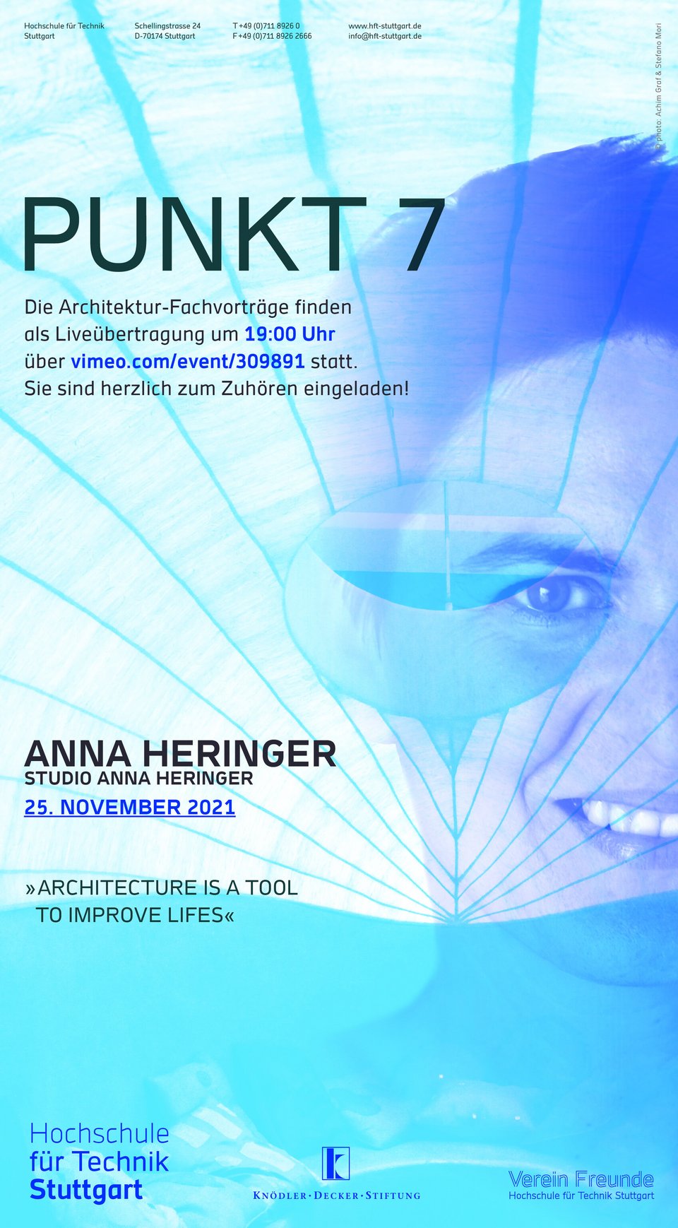 Auch in diesem Wintersemester finden an der Fakultät Architektur und Gestaltung wieder Fachvorträge im Rahmen unserer Punkt 7-Reihe statt. In der Vortragsreihe kommen bereits seit 2004 erfolgreiche Gestalter und Gestalterinnen der Bereiche Architektur, Innenarchitektur und Stadtplanung zu Wort.