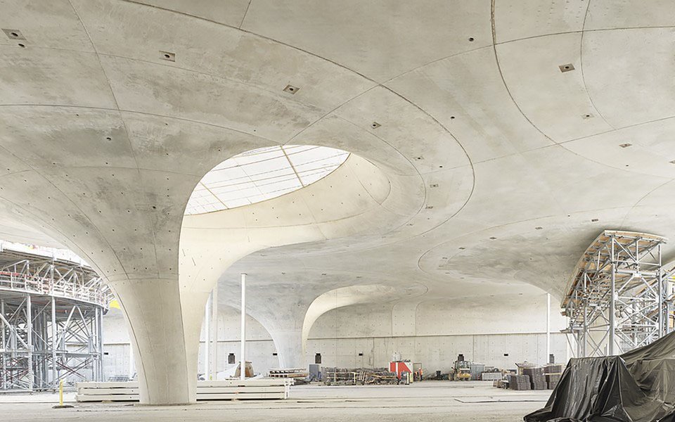 Der neue unterirdische Durchgangsbahnhof in Stuttgart ist das Herzstück des Bahnprojekts Stuttgart-Ulm. Für den Bau seiner einzigartigen Dachkonstruktion aus 28 Kelchstützen werden komplexe Betonschalungen aus Brettsperrholz verwendet. Teile der Schalungen werden nach ihrem Einsatz zu Holzfaserdämmstoff umgewandelt, der Rest wird einer thermischen Verwertung zugeführt. Das Volumen aller Schalungselemente beläuft sich netto auf ca. 5.000 m³ Brettsperrholz – ein großes und bisher ungenutztes Potenzial.