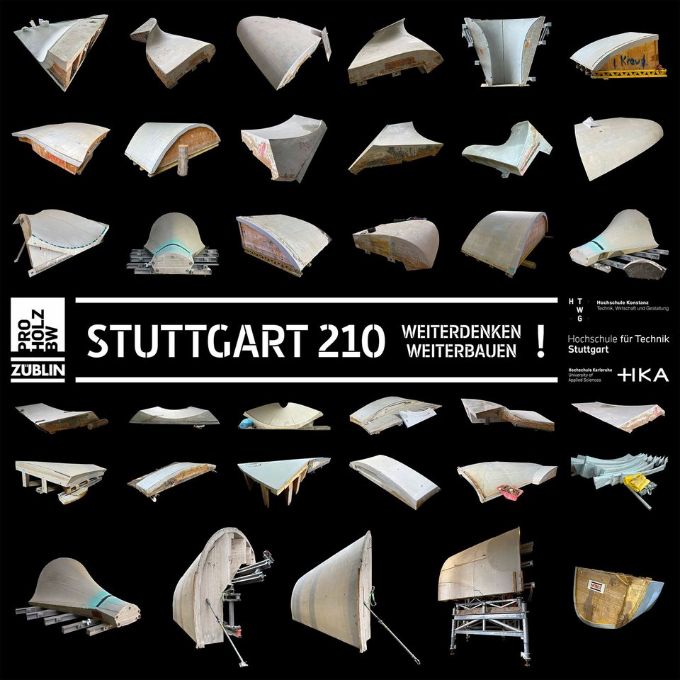 Ein Team der Hochschulen Konstanz, Stuttgart und Karlsruhe hat es sich gemeinsam mit proHolz Baden-Württemberg zur Aufgabe gemacht, die Betonschalungen der Baustelle des neuen Hauptbahnhofs in Stuttgart einem neuen Verwendungszweck zuzuführen. Im Rahmen des Forschungsprojekts „Stuttgart 210 weiterdenken – weiterbauen!“ werden Möglichkeiten zur Wiederverwendung der Betonschalungen untersucht und anschließend in verschiedenen Reallaboren umgesetzt.