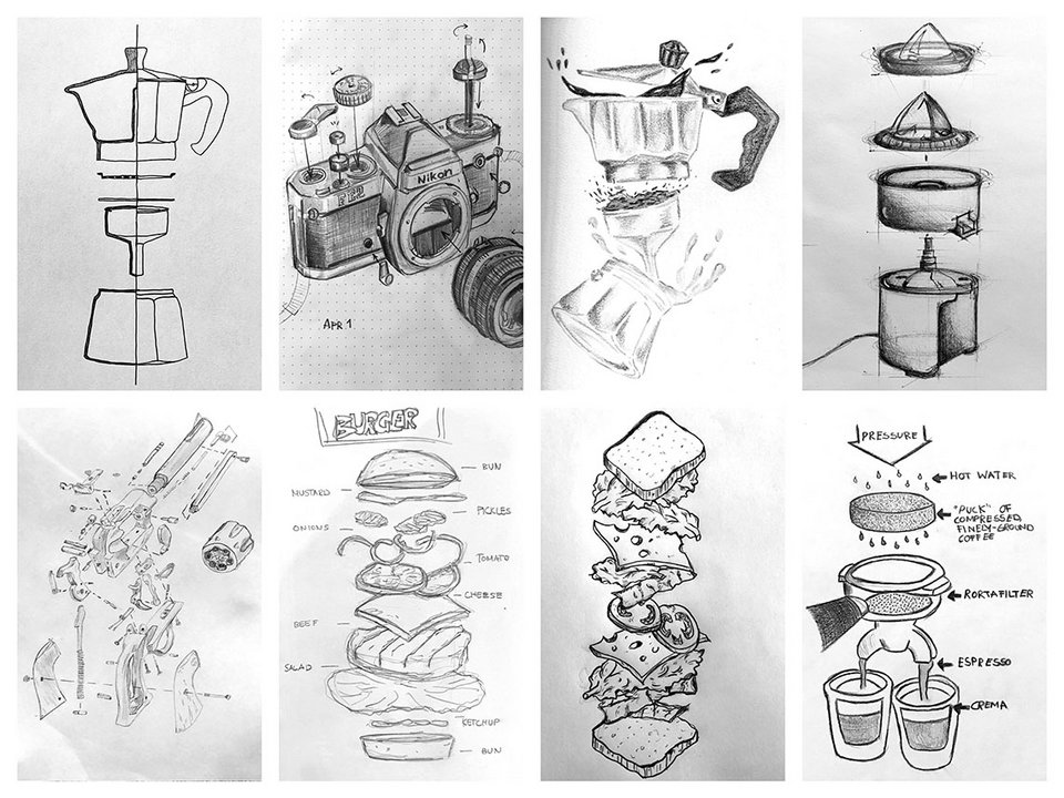 Mit Vorlesungsbeginn am 16. März 2020 sahen sich Studierende wie Lehrende mit der aussergewöhnlichen Situation konfrontiert, soziale Kontakte und das öffentliche Leben auf ein unbedingt notwendiges Minimum zu reduzieren. Unter diesen denkbar ungünstigen Vorzeichen für die Lehrveranstaltung „Analoge Darstellung“, die im Sommer üblicherweise als Architekturzeichnen im Freien erfolgt, begann am 23. März die „One Sketch A Day Challenge“ für das zweite Semester des Bachelor-Studiengangs Innenarchitektur. Paradoxerweise boten die gravierenden Einschränkungen optimale Voraussetzungen für das Zeichentraining zuhause.