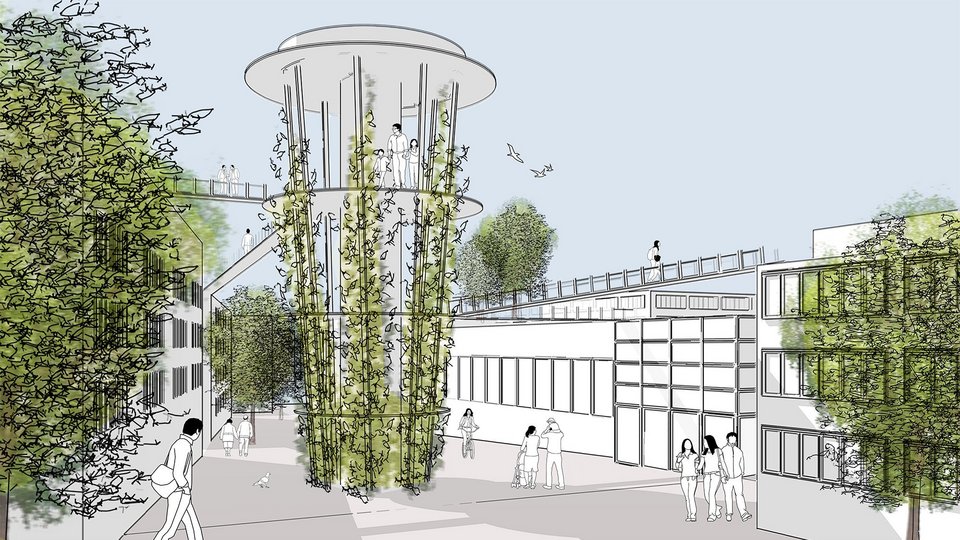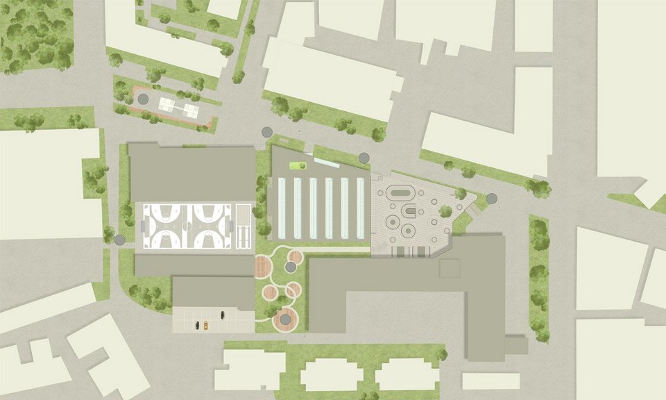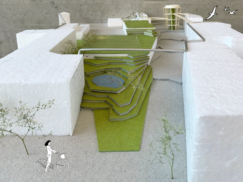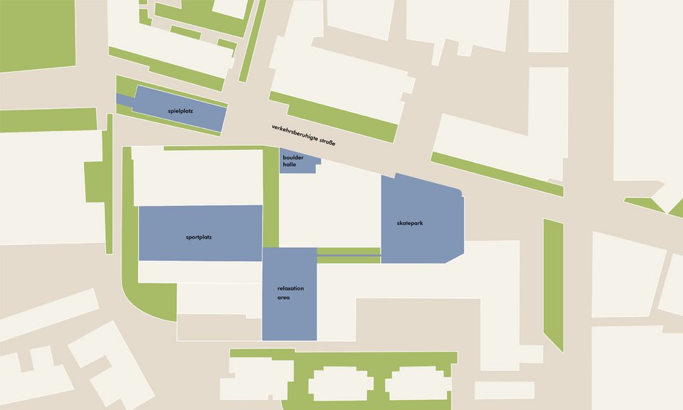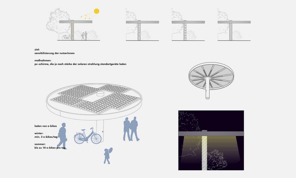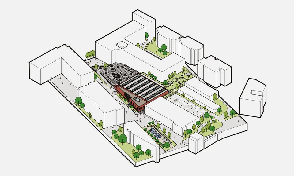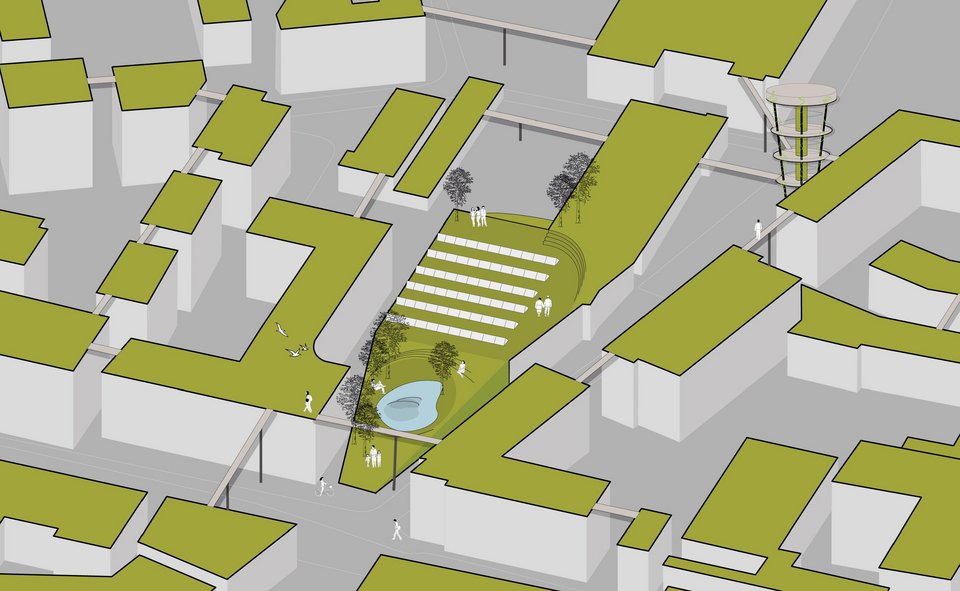 Der Fokus des Projektes lag darauf, durch ein möglichst minimalinvasives Vorgehen einen großen Impact zu erreichen und so die gesteckten Ziele bestmöglich zu erfüllen: ein ganzheitliches architektonisches Konzept zu entwickeln, die Aufenthaltsqualität zu verbessern, sowie die Reduzierung des Energieverbrauchs und des CO2-Ausstoßes. Der Entwurf beachtet einen maximalen Nutzungsgewinn bei minimalem Eingriff mit ständigem Blick auf die Realisierbarkeit. Minimalinvasive Lösungen haben das Potenzial, den CO2-Ausstoß und die Kosten deutlich zu reduzieren bzw. gering zu halten. Das Ergebnis zeigt, dass auch mit vergleichsweise kleinen Eingriffen in den Bestand des Areals ein großer Mehrwert für die Allgemeinheit geschaffen werden kann.