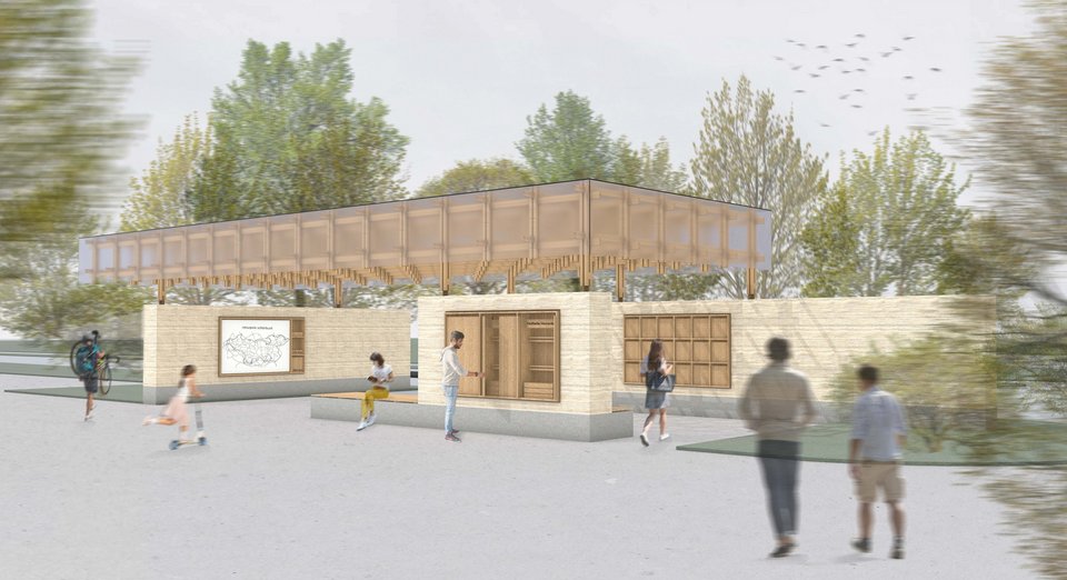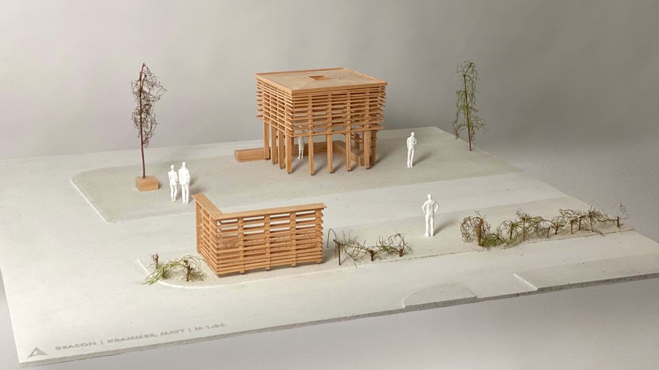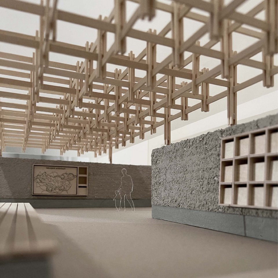 Im Rahmen eines Ideenwettbewerbs der Stadt Herrenberg entwickelten die Studierenden Ideen für einen Info-Punkt am Schönbuchturm. Auf dem Parkplatz soll das Bauwerk als erste Anlaufstelle Gäste aus Herrenberg und der Region begrüssen, über den Naturpark Schönbuch, Wander- und Radwege informieren und Touristen zum Aussichtspunkt auf dem Stellberg bzw. in die Herrenberger Altstadt leiten. In das Bauwerk in Holzbauweise waren außerdem Möglichkeiten zum Parken, Laden und Reparatur von Fahrrädern und eine Vermarktungsmöglichkeit für regionale und saisonale Produkte zu integrieren.