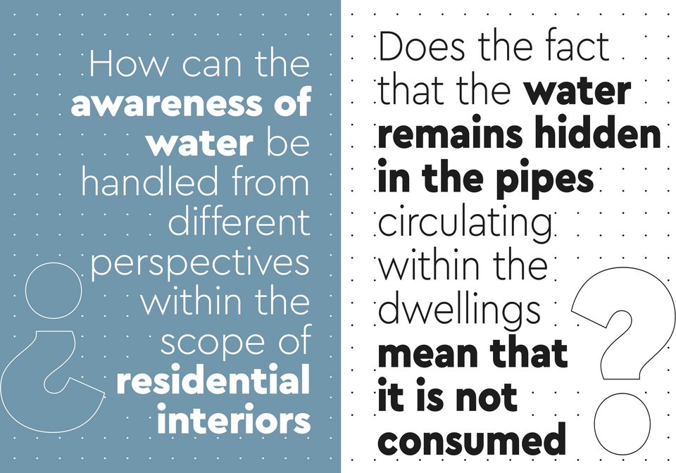 Das gegenwärtige Zeitalter des Menschen, auch Anthropozän genannt, beschreibt den Einfluss unserer Konsumkultur und des damit verbundenen übermäßigen Ressourcenverbrauchs auf den Planeten. Wir müssen unsere Konsumgewohnheiten hinterfragen und „Wasser“ als lebensnotwendige Grundlage für Mensch und Natur ist ein Gegenstand dieser Debatte. Um das Thema ins Bewusstsein zu rücken und dafür zu sensibilisieren stellte der Workshop die Frage: Wie können wir die Sichtbarkeit von Wasser im Wohnbereich erhöhen? Im Rahmen des Workshops wurde der tägliche Wasserverbrauch sowohl auf konzeptioneller Ebene als auch im innenarchitektonischen Maßstab untersucht und diskutiert. Im Laufe des Workshops stellten verschiedene Referent:innen vielseitige Beiträge rund um das Thema Wasser vor und gaben von der räumlichen Installation bis zum städtebaulichen und historisch-geografischen Kontext neue Perspektiven. In sieben Teams betrachteten die 66 Teilnehmer:innen jeweils einen Raum einer Wohnung: Bad, Flur, Wohnzimmer, Balkon, Lager, Küche und Schlafzimmer. Am Ende wurden die Projekte in einer interaktiven Ausstellung präsentiert.