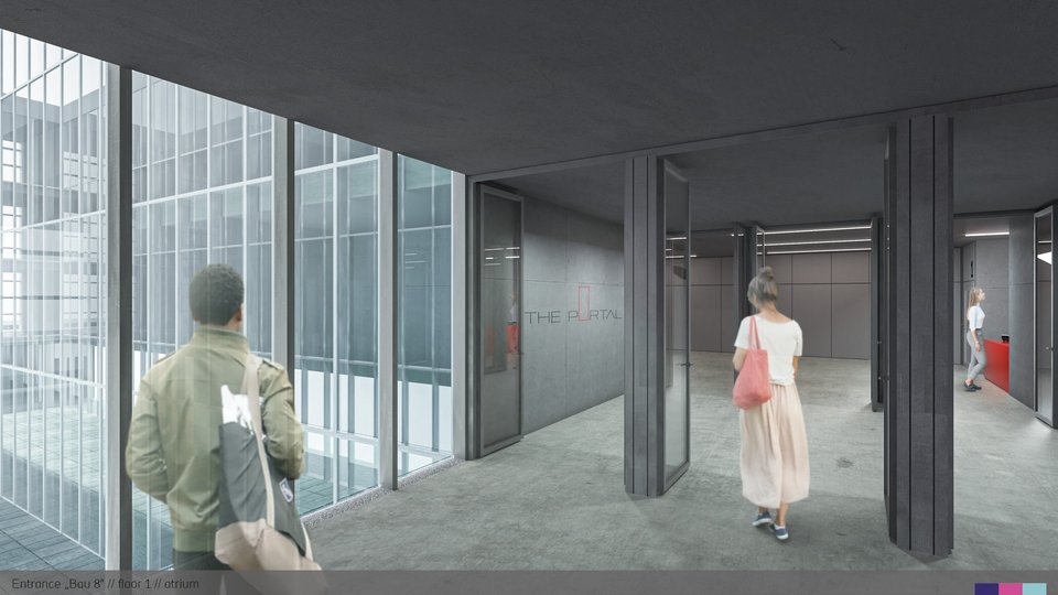 In „The Portal“ stellt der Bau 8 der Hochschule für Technik das Portal dar, dass den Besuchern die Möglichkeit bieten soll, in eine Parallelwelt einzutauchen und in dieser auf digitale Abbilder von Exponaten zugreifen zu können, die sich in dem Ausstellungsraum, sowie in den Depots verschiedener Museen befinden. Die Idee dahinter ist, dem architektonischen Raum Ausstellungsfläche zu geben, die durch ihre digitale Erweiterbarkeit und Überlagerung einen größeren Raum für Ausstellungsobjekte, Wissen und Vernetzung schafft.