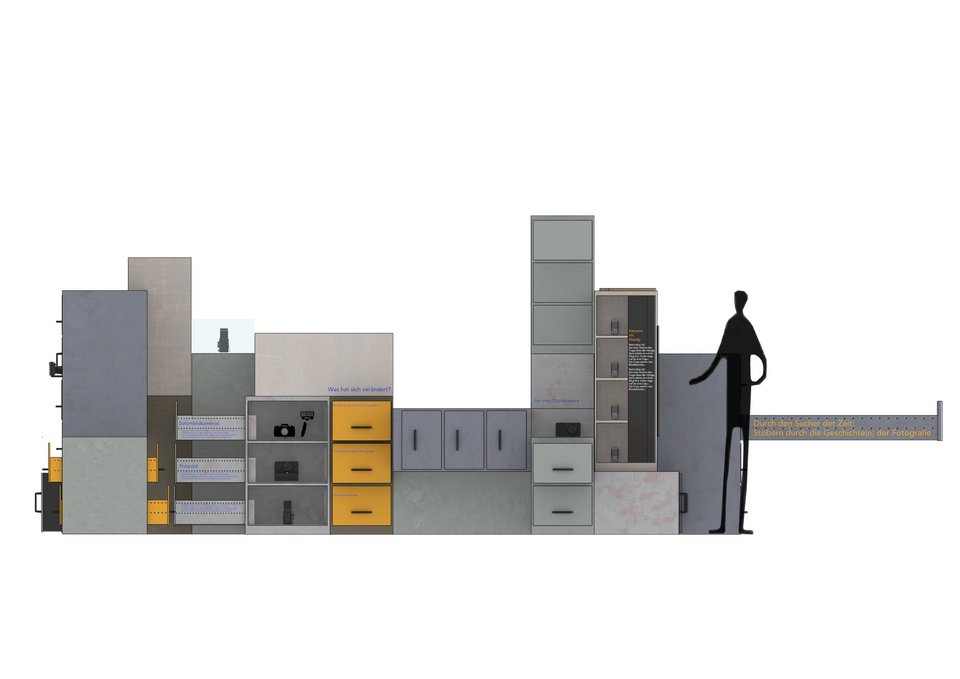 Die aufbereiteten Archivschränke treten als Zeitkapseln auf, die die Vielfalt der Fotografie in ihren verschiedenen Facetten widerspiegeln. Von der Idee der Camera Obscura bis zu den hochtechnologisierten Kameras des 21. Jahrhunderts – jede Schublade erzählt ihre eigene Geschichte und präsentiert Fotografien, die nicht nur die Entwicklung der Technik, sondern auch den sozialen Wandel und die künstlerische Arbeit festhalten. Interaktiv und auf der Suche nach spannenden Details stöbern sich die Besucher durch Momentaufnahmen, Modelle,Experimente, Szenen und gebaute Statistiken.