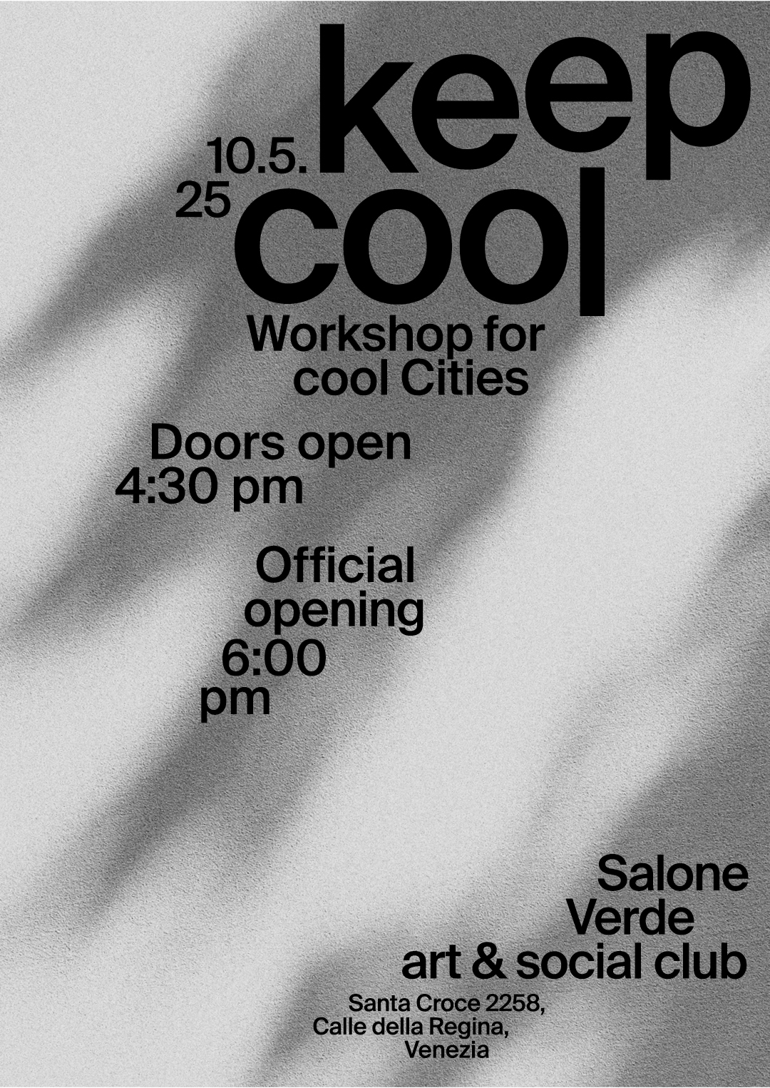 Parallel zur 19. Internationalen Architekturausstellung – La Biennale di Venezia lädt der Salone Verde art & social club zu einem „Workshop for cool Cities“ ein. Die lokale Erwärmung der Städte aufgrund des Klimawandels und der verstärkten Urbanisierung wird derzeit viel diskutiert. Zwei Installationen untersuchen die Frage „Wie können wir mit der Hitze leben?“ aus unterschiedlichen Perspektiven: