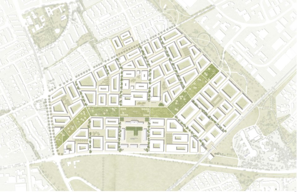 Im Norden sollen durchlässige, kleinteiligere Strukturen behutsam auf das angrenzende Einfamilienhausgebiet