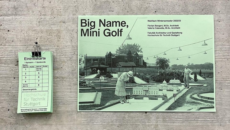 Im Wintersemester 2022/23 wurde „Big Name, Mini Golf" vom IMIAD als studiengangsübergreifendes Wahlfach der Fakultät Architektur und Gestaltung angeboten.