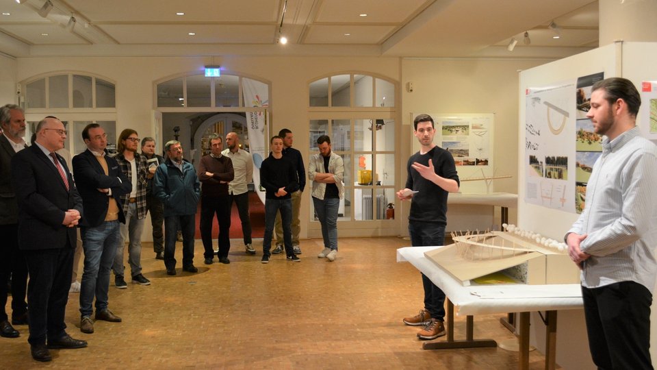 Die Kooperation zwischen Stadt und Hochschule war von Professor Rolf Kicherer initiiert worden. Seine Master-Studierenden hatten im Kurs „Konstruktives Entwerfen“ ein Semester lang Zeit, um für die in der Landesgartenschau-Konzeption beschriebene Idee eines Waldbogens am Bad Mergentheimer Ketterberg konkrete Pläne zu erarbeiten. Anfang Dezember waren mit Bernd Straub, Eva Müller und Carsten Müller bereits drei Mitglieder der Landesgartenschau-Gruppe bei einer Zwischenpräsentation an der Hochschule, um erste Rückmeldungen zu geben.
