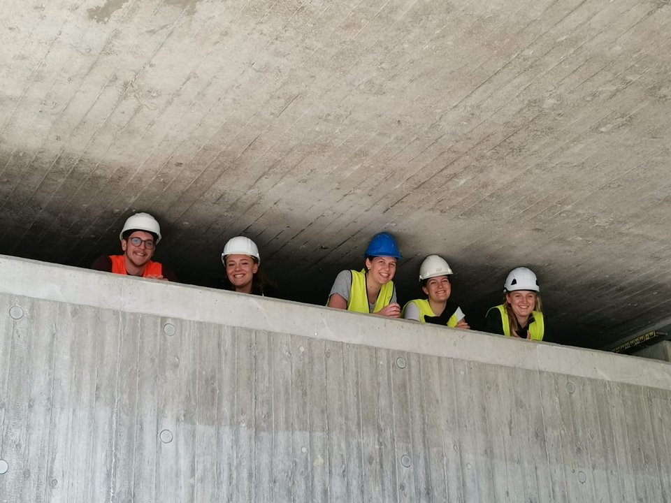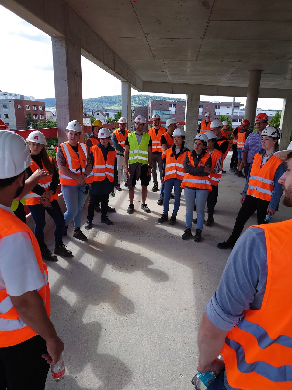 Prof. Dr. Krauß und 25 Studierende sind im Raum Stuttgart immer noch unterwegs. Heute auf der Baustelle: Flugfeldklinikum in Böblingen/Sindelfingen und Log Inn Hotel in Waiblingen.