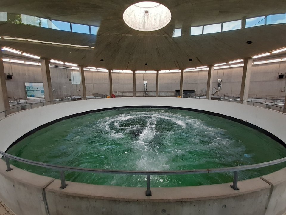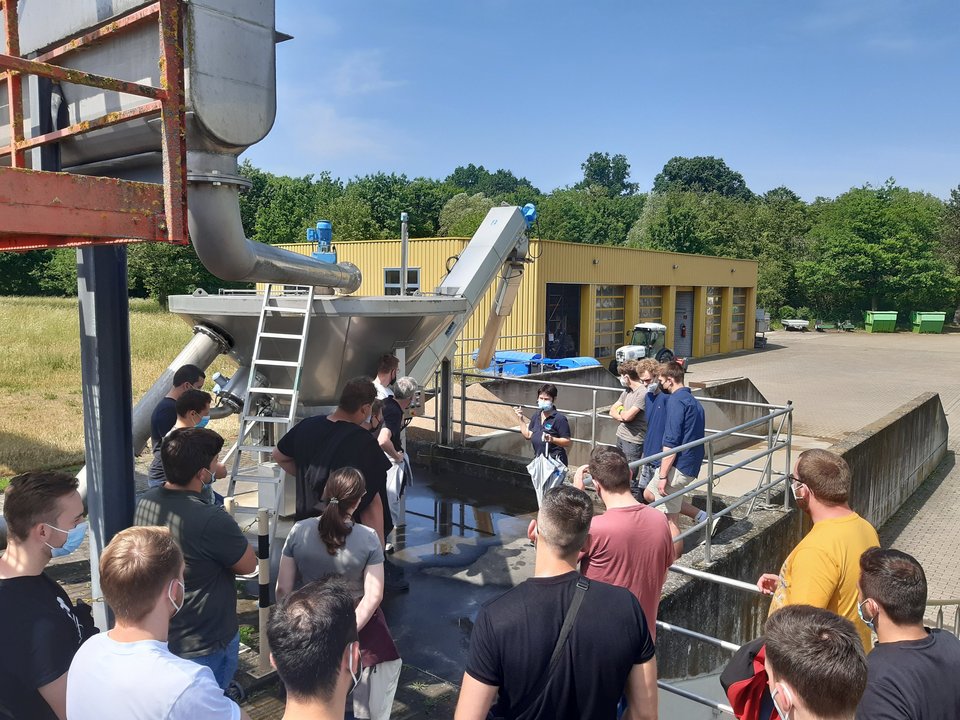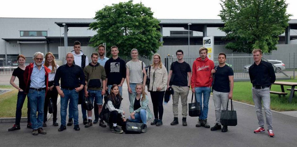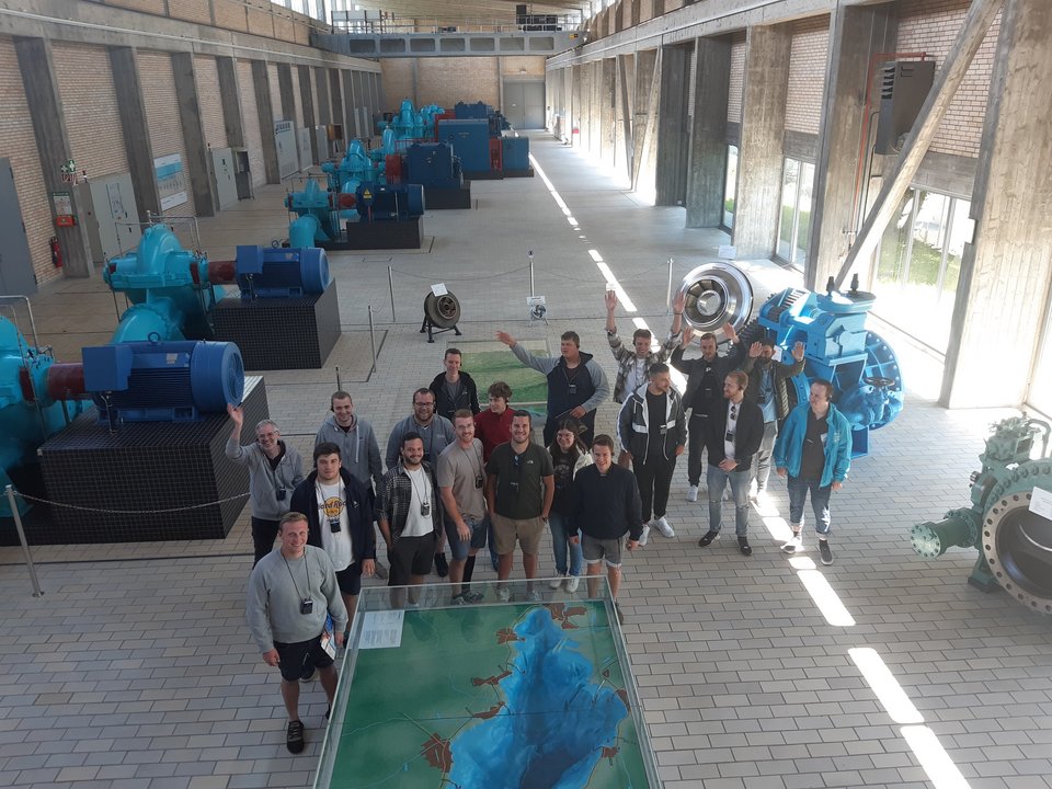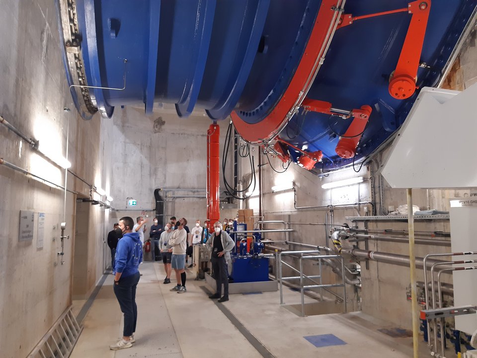 Prof. Dr. Bach und Prof. Dr. Baumann mit 18 angehende Bauingenieure in der Welt des Wasserwesens