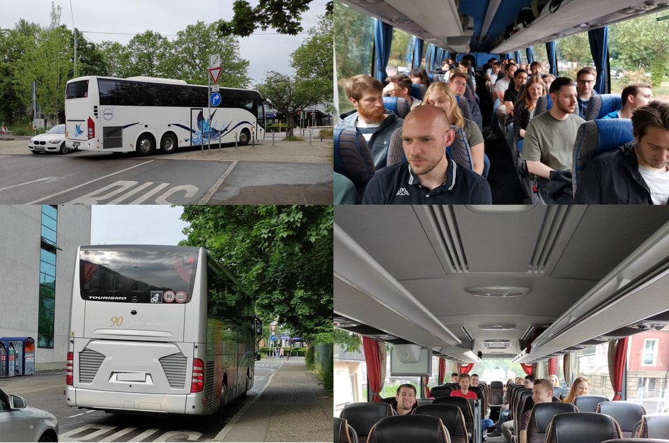 43 Studierende zusammen mit Prof. Dr. Günther und Prof. Dr. Fink setzen mit guter Laune die Reise fort.