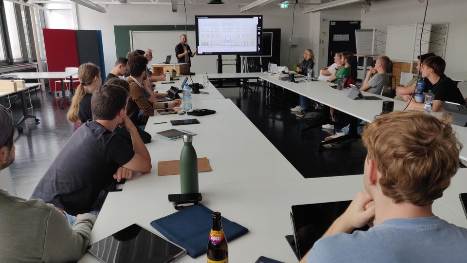 Im Rahmen eines interdisziplinären Lehrprojekts arbeiten Studierende aus der Architektur und dem Bauingenieurwesen zusammen, um gemeinsam Lösungen für den Innenhof der HFT und insbesondere den studentischen Block 4 zu entwerfen, die das Antlitz der HFT prägen werden und zudem sehr nachhaltig sind.