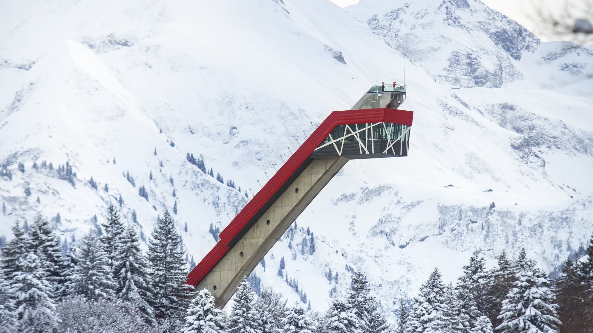 Johanna Höb, Teamleiterin Hochbau und Vorstandsmitglied Andreas Möller veranschaulichten anhand der Heini-Klopfer-Skiflugschanze (Oberstdorf), wie bestehende Bauwerke durch Instandsetzung erhalten bleiben unter Einhaltung und Anpassung aktueller Anforderungen bei gleichzeitig schonendem Einsatz von Ressourcen.