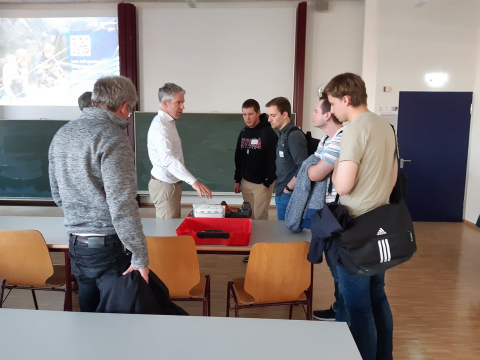 Nachdem die Studierenden Einblicke in diese komplexe Ingenieurleistung und Projektabwicklung erhielten, beantworteten die Referent:innen Fragen bspw. zur Projektdauer, zu den Kosten und zum Ausschreibeverfahren im Anschluss. Es bot sich auch nochmal die Gelegenheit, das Anschauungsmaterial ausgiebig anzuschauen und anzufassen.
