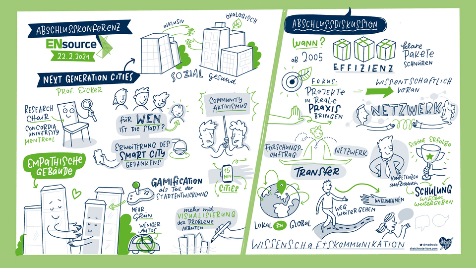 ENsource wird über die Projektlaufzeit seine Wirkung weiter entfalten: „Wir stehen mit der im Netzwerk vorhandenen Kompetenz als Dienstleister gerne zur Verfügung.“ so Prof. Dr. Volker Coors. Er kündigte an, dass für das an der HFT Stuttgart entwickelte Tool SimStadt künftig Workshops für kommunale Planer stattfinden werden.