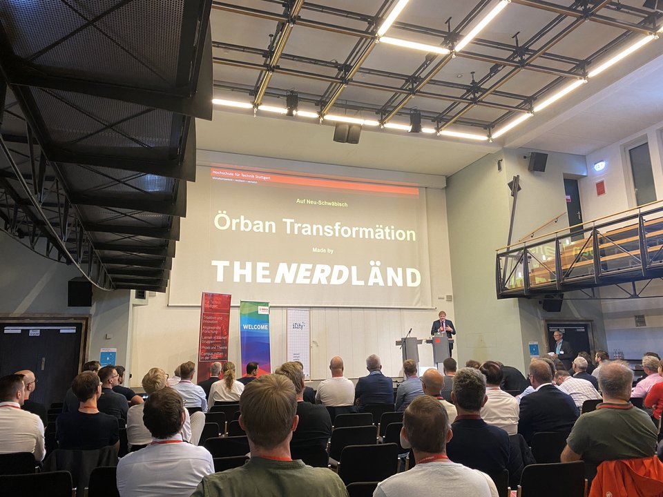 Den Auftakt bildete der Eröffnungsvortrag von Prof. Dr. Volker Coors, Prorektor für Forschung und Digitalisierung an der Hochschule. Er betonte die Bedeutung von Forschung und Vernetzung: „Die HFT Stuttgart fördert die urbane Transformation durch anwendungsorientierte Forschung und Transfer, die klimakompetent, resilient und vernetzt gestaltet sind, um die UN-Nachhaltigkeitsziele zu erreichen.“