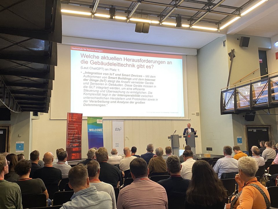 Vom 11.-13. September fand an der Hochschule für Technik Stuttgart die 36. GLT-Anwendertagung mit dem Thema „Künstliche Intelligenz in der Gebäudeautomation“ statt. Die Veranstaltung gilt als führenden Veranstaltung für Gebäudeleittechnik im deutschsprachigen Raum. Vor 200 Teilnehmerinnen und Teilnehmern wurden die neusten Ansätze und Lösungen im Bereich KI und Gebäudeautomation präsentiert.