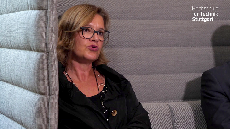 „Eine intelligente Stadt ist nachhaltig und lebenswert für die Menschen. Eine rein technische Lösung führt nicht zur intelligenten Stadt“, verdeutlichte Prof. Dr. Christina Simon-Philipp, Professorin für Stadtplanung und Städtebau an der HFT Stuttgart. Die Architektin sprach sich für eine ganzheitliche Betrachtung aus, die technische, soziale, ökologische und wirtschaftliche Aspekte integriert. „Wir müssen uns mehr Gedanken darüber machen, wie wir Menschen miteinbeziehen und wie wir mit ihnen vor Ort gemeinsam Lösungen entwickeln.“ Sie wies auf HFT-Stuttgart-Projekte hin, in denen mit den Bürger:innen gemeinsam neue Formen der Mobilität und des Zusammenlebens gedacht und neue Konzepte ausprobiert werden. In sogenannten Reallaboren, zum Beispiel in der Innenstadt von Geislingen, in Zuffenhausen-Rot, in Stuttgart-Vaihingen und am Nordbahnhof in Stuttgart. Für die Transformation hin zu einer CO2-neutralen Umgebung seien viele Innovationen nötig – aber auch neue Lebensweisen und ein anderer Umgang mit den Ressourcen."