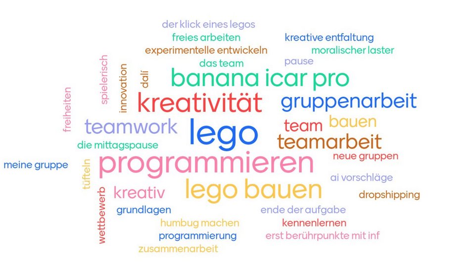 Schon in der Vorbereitungswoche Ende September ging es für die neuen Erstsemester des Bachelor-Studiengangs Informatik mit dem Programmieren los. In einer interdisziplinären Projektaufgabe gründeten diese ein fiktives Start-up, das selbstfahrende Autos entwickelt. Die Studienanfänger analysierten zunächst, welche Expertise dafür notwendig ist und in welchen Vorlesungen aus dem Informatikstudium sie diese erwerben können. Danach wurde es praktisch und die Teams entwickelten Prototypen der Autos, die durch individuelle Programmierung für das fiktive Start-up optimiert wurden. Die Jury kürte abschließend die Gewinnerteams (siehe Fotos). Die herausfordernde Projektaufgabe fand bei allen Teilnehmenden großen Anklang, zum Beispiel bei Rafael Lettieri, der „ein großer Fan der Projektaufgabe war.“ Auch der stellvertretende Semestersprecher Miro Liebel „kann die Vorbereitungswoche nur weiterempfehlen. Es ist eine tolle Möglichkeit schon vor Vorlesungsbeginn vor allem einige Kommiliton:innen kennen zu lernen und erste Kontakte zu knüpfen.“ Was den Erstsemestern aber vor allem in der Vorbereitungswoche gefallen hat? Lego, wie die am Ende der Woche durchgeführte Umfrage zeigt (siehe Abbildung). Die Autos wurden mit den Lego Spike Prime Education Sets umgesetzt, einer sehr niederschwelligen und zugleich motivierenden Art mit blockbasiertem Programmieren anzufangen.