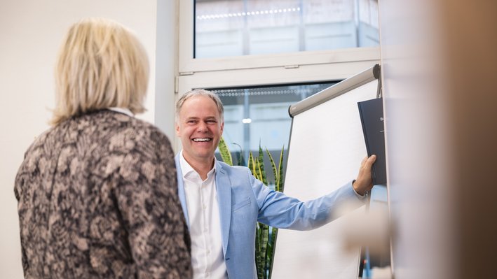 Führung ist für uns an der HFT Stuttgart ein zentrales Thema. In einem gemeinsamen Prozess haben wir unsere Führungskräfteleitlinien entwickelt, die zeigen, wie wir Führung verstehen und leben möchten. Sie spiegeln unser Ziel wider, ein moderner und wertschätzender Arbeitgeber zu sein, der Führung als wichtigen Bestandteil einer erfolgreichen Zusammenarbeit sieht. Erfahren Sie mehr über unsere Führungskultur und die Leitlinien, die uns dabei unterstützen.