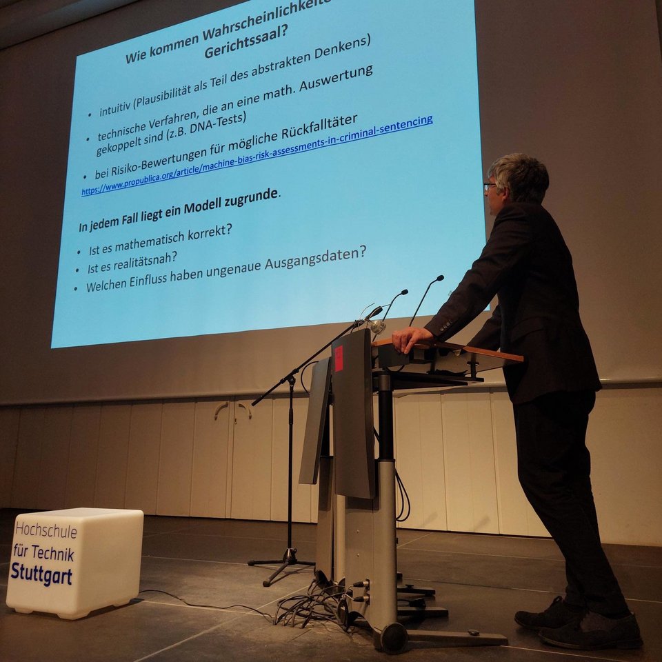 Der Fachvortrag von Dr. Raj Spielmann aus Bern zum Thema „Wahrscheinlichkeit im Gerichtssaal“ gewährte spannende und teils düstere Einblicke in vier Gerichtsfälle, in denen Mathematik bei der Urteilsfindung eingesetzt wurde. Dass allerdings auch Experten dabei scheitern können, Wahrscheinlichkeiten richtig zu interpretieren und sachgemäß zu benutzen, zeigt auf, dass Juristen sehr vorsichtig im Umgang mit abstrakten Methoden sein sollten, damit keine ungerechtfertigten Schuldsprüche gefällt werden.