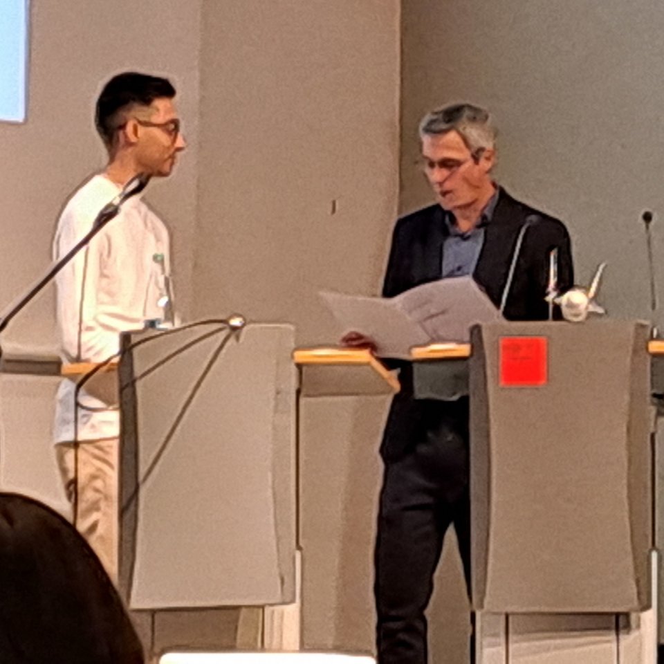 Anschließend verlieh Prof. Dr. Brunk den Preis der Versicherungsgesellschaften im Raum Stuttgart für den besten Bachelor-Abschluss im Studiengang Mathematik. Der Preisträger im Sommersemester 2022 ist Herr Vipin Singh. Gratulation auch an dieser Stelle zu seinen hervorragenden Leistungen! Herr Singh fertigte seine Abschlussarbeit „Entwicklung eines deflektrometrischen Prüfaufbaus für spiegelnde Prüfobjekte“ extern bei einem Unternehmen für industrielle Bildverarbeitung an. Der hochschulseitige Betreuer und Prüfer war Prof. Dr. Uwe Müßigmann.