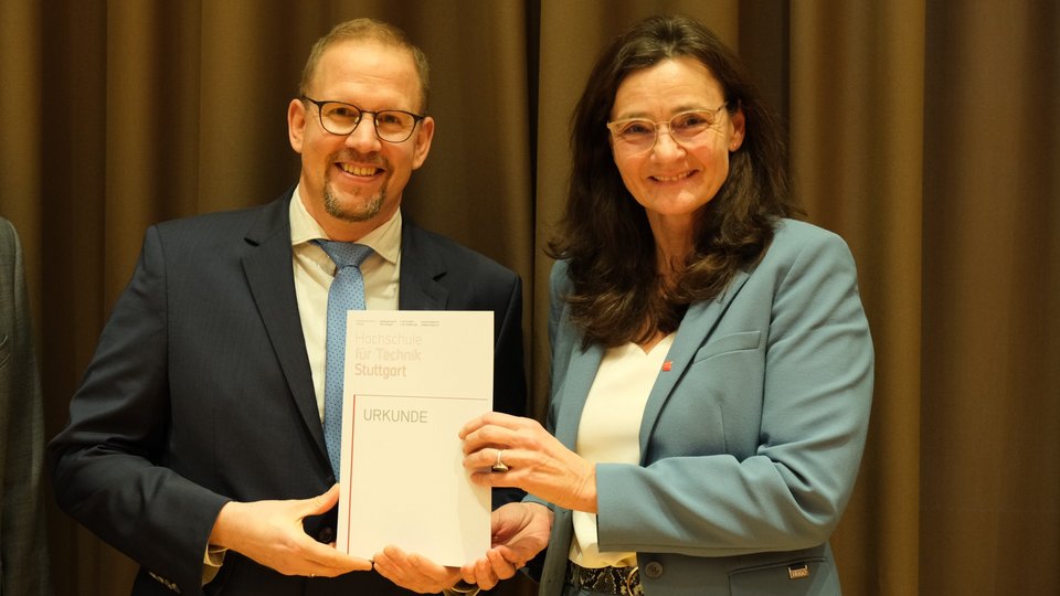 Mit der Ernennung von Thomas Esch zum Honorarprofessor werden seine Leistungen in der Lehre und sein Einsatz für die Hochschule für Technik Stuttgart, insbesondere für die Studierenden, gewürdigt.