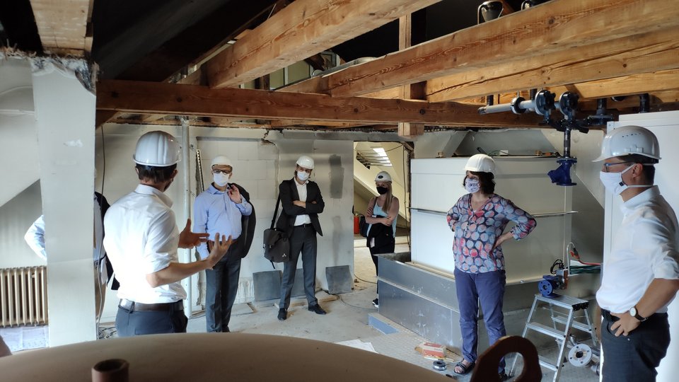 Mit Ihrem Besuch erhielten Staatssekretärin Splett und Amtschef Steinbach einen umfassenden Eindruck über die moderne Kälteanlage auf dem Dach der Hochschule für Technik.