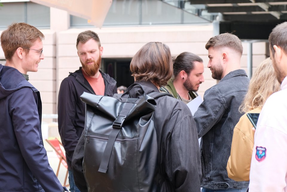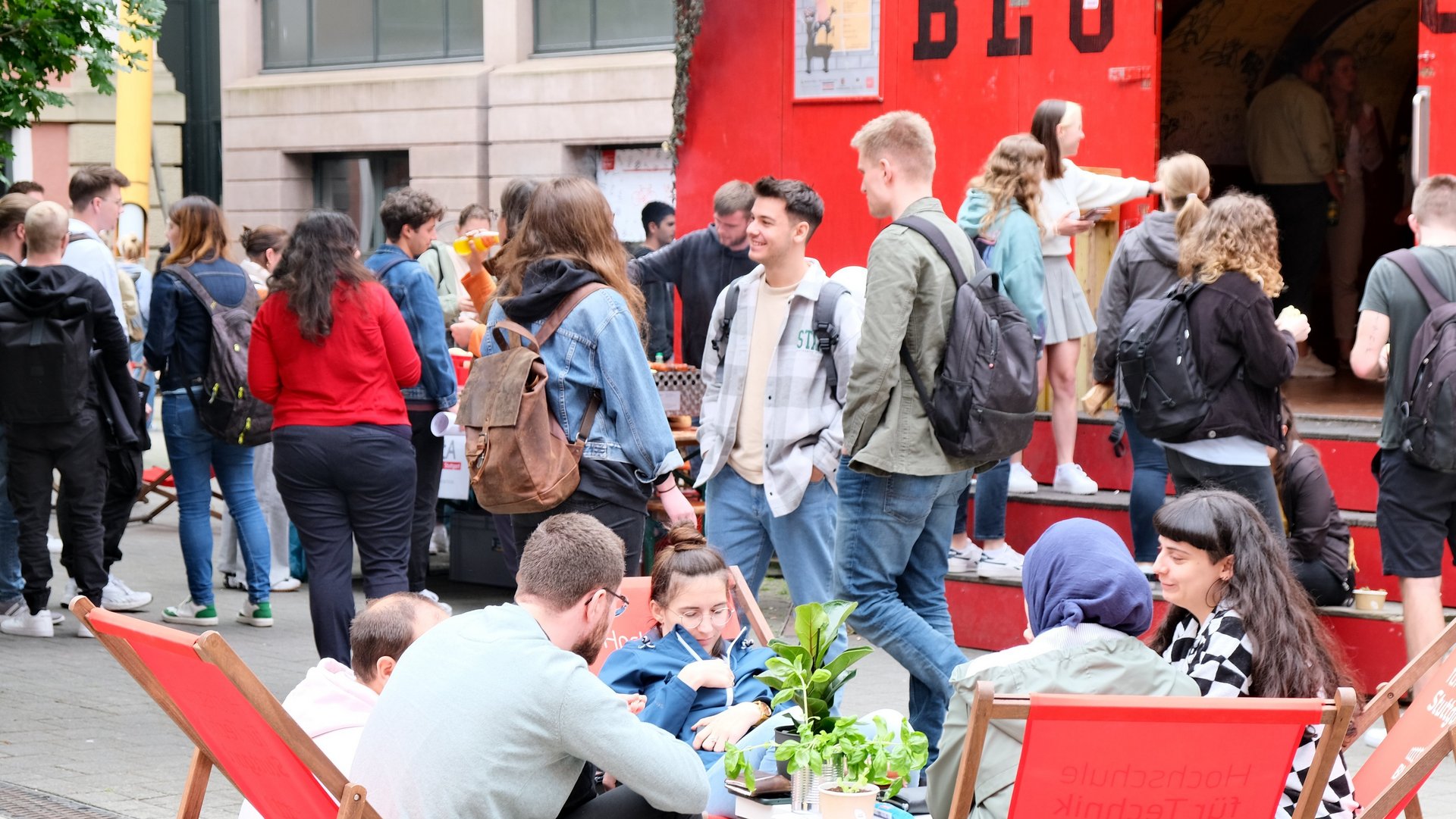 Grillwürstchen und chillige Beats – das Team von Block 4 e.V. bringt so leicht nichts aus der Spur. In fast stoischer Gelassenheit grillt Niko Jochim, AStA-Vorsitzender, Würstchen auch dann, wenn Brötchen ausgehen und schnell jemand in die Stadt springen muss, um neue zu besorgen. Sein Fazit: „Wir waren von der großen Nachfrage überrascht. Es war schwer abzuschätzen, wie viele Menschen zu diesem Warm-up-Event vor dem Stallfest kommen würden. Aber hey: Jetzt sind viele da, und das ist klasse. Coole Stimmung, tolles Wetter … und 1.600 Eintrittskarten für das Stallfest sind im Vorverkauf weggegangen. Wahnsinn!“