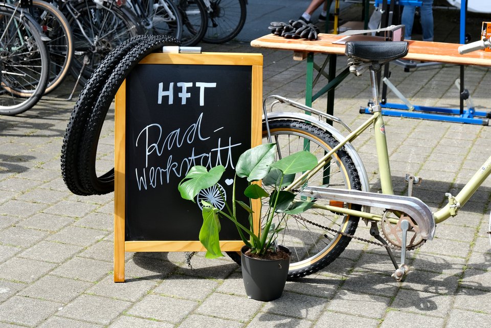 Lange Schlangen gab es vor dem Stand der HFT-Radwerkstatt. Studierende und Mitarbeitende mit Problemen an ihren Rädern machten hier unter Anleitung und mit passendem Werkzeug ihre ökologisch wertvollen Fortbewegungsmittel wieder fit! Angeleitet und unterstützt wurden sie dabei von Amando Reber, Jonas Stave und ihrem Team. Auch sie waren mit dem Echo auf ihr Angebot mehr als zufrieden. „HFT-Allee ist eine gute Chance, für unsere Radwerkstatt Publicity zu bekommen. Unser Angebot wird gut angenommen. Eine Resonanz, über die mein Team und ich mich sehr freuen,“ fasst Amando Reber den Tag zusammen.