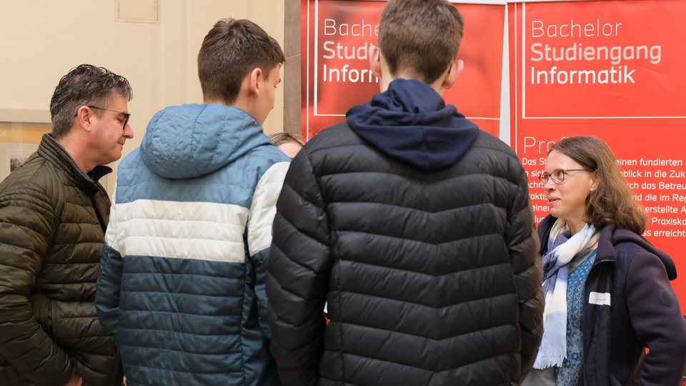 In Kurzpräsentationen der Bachelor-Studiengänge im 20-Minuten-Takt konnten sich die Schüler:innen einen ersten Überblick verschaffen. Probevorlesungen boten die Möglichkeit, einen Hauch von Studium vorab zu erleben.