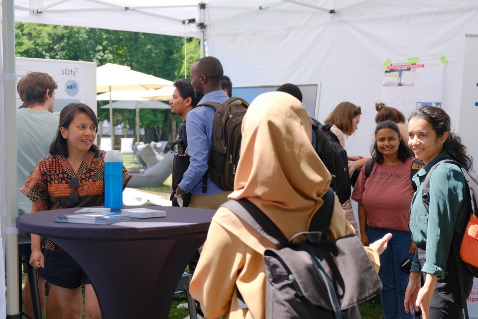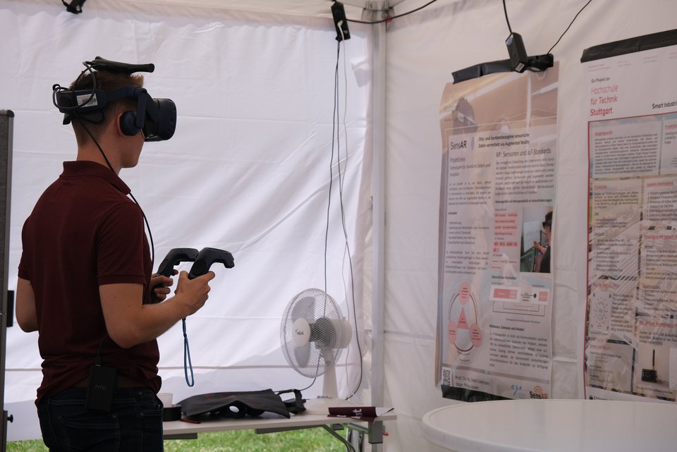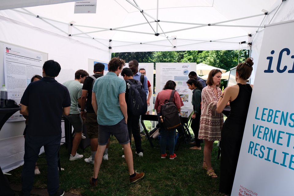 Der Smart City Demonstrator der HFT Stuttgart zeigte auf, wie Forschung einen Beitrag zu einer klimakompetenten, resilienten und vernetzten Gesellschaft leisten kann. Mittels Mixed Reality wurden spielerisch Einblicke in die Forschungsarbeiten des Urban Geoinformatics-Lab der HFT Stuttgart gegeben und erlebbar gemacht.
