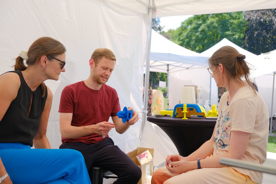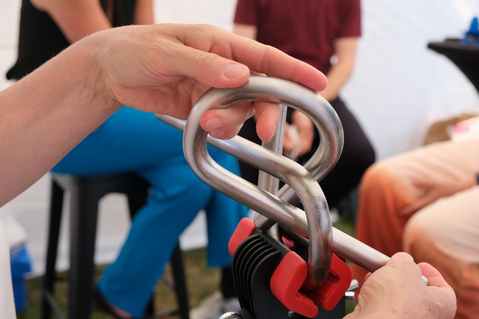Dieser Frage konnten man nachgehen, indem man im Wettlauf gegen den Computer ein Geduldspiel aus Metall löste. Ganz nebenbei erfuhr man dabei, was es mit einem Vexier auf sich hat und was man bei der digitalen Montageplanung von Autos beachten muss.