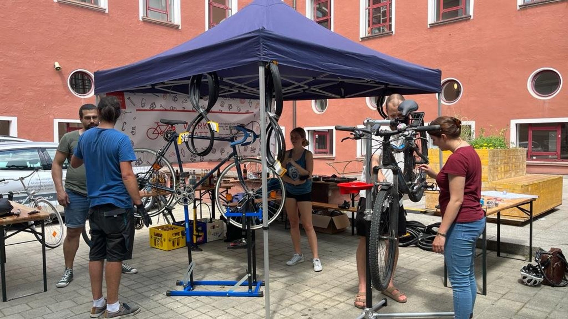 Wer kennt es nicht: Das Fahrrad steht wochenlang in der Ecke, weil der Reifen platt oder die Gangschaltung kaputt ist. Die Macher:innen der HFT-Radwerkstatt bieten am 22. September von 13:00 bis 18:00 Uhr bereits zum zweiten Mal ihre Hilfe an, bezahlt werden lediglich die benötigten Ersatzteile. Alle Interessierten sind samt Fahrrad herzlich eingeladen, die Pop-Up-Aktion im Innenhof zwischen Bau 1 und 3 zu besuchen!