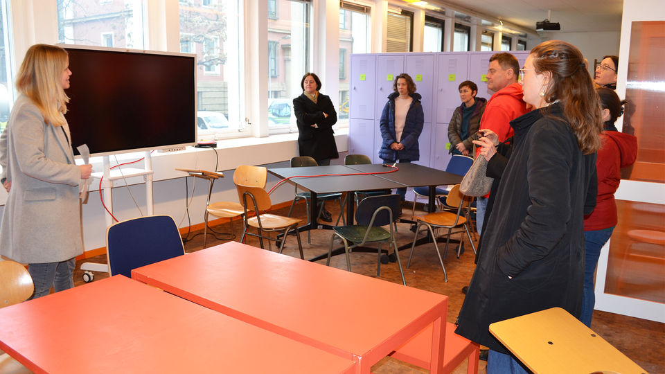 In einer Raumsafari im Rahmen der Reihe HFTalk fed and inspired, wurden Studierenden, Lehrenden und Mitarbeitenden der HFT Stuttgart die neugestalteten Räume vorgestellt: der New Learning Raum, der High Flex Raum, das Raumlabor, der Aula-Vorraum und die Studiopods. Diese multifunktionalen Räume kombinieren praxisorientierte Lehre mit wissenschaftlicher Begleitung. Dank flexibler, mobiler Möbel und passender Medientechnik können hier unterschiedliche Szenarien für hybride, kooperative und kollaborative Lernformate erprobt werden.