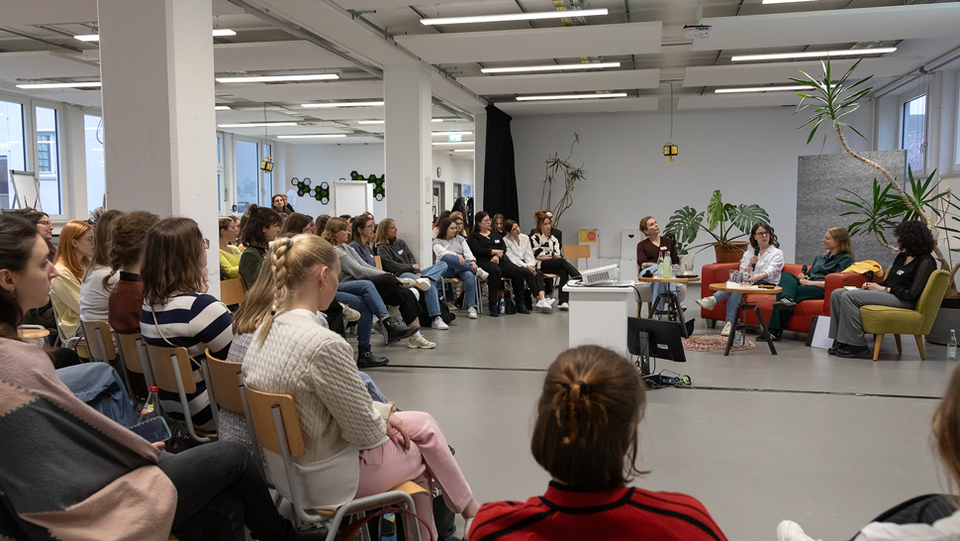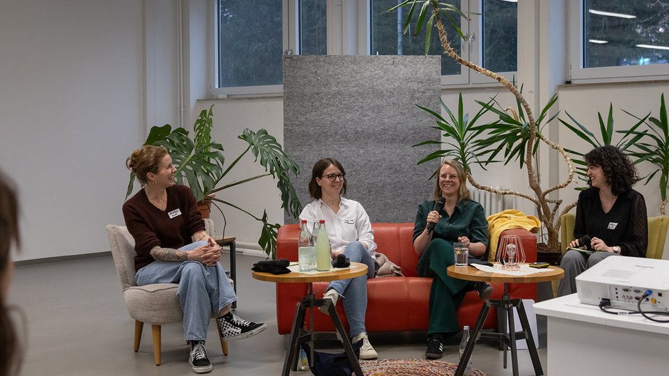 Sarina Hötzel (Fünf Prozent), Aliena Leonhard (relionite), Dr. Julia-Sophie Ezinger (Rhome) und Agnieszka Walorska (mika) tauschten sich unter der Moderation von Tuğba Küpeli (HfWU) und Andrea Fuhrer (HfWU) zu verschiedenen Fragen aus. Themen wie Risikobereitschaft, Teilzeitgründung, Vereinbarkeit und die Suche nach einem passenden Co-Founder wurden offen angesprochen.Themen wie Risikobereitschaft, Teilzeitgründung, Vereinbarkeit von Familie und Startup sowie die Suche nach passenden Mitgründer:innen standen im Mittelpunkt.