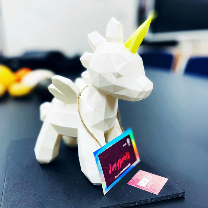Zum ersten Mal gab es in diesem Semester einen im neuen HFT-Labor VokuhiLab gedruckten Preis in Form eines Einhorns, das in der Start-up Welt für einen besonders schnellen Unternehmenserfolg steht.