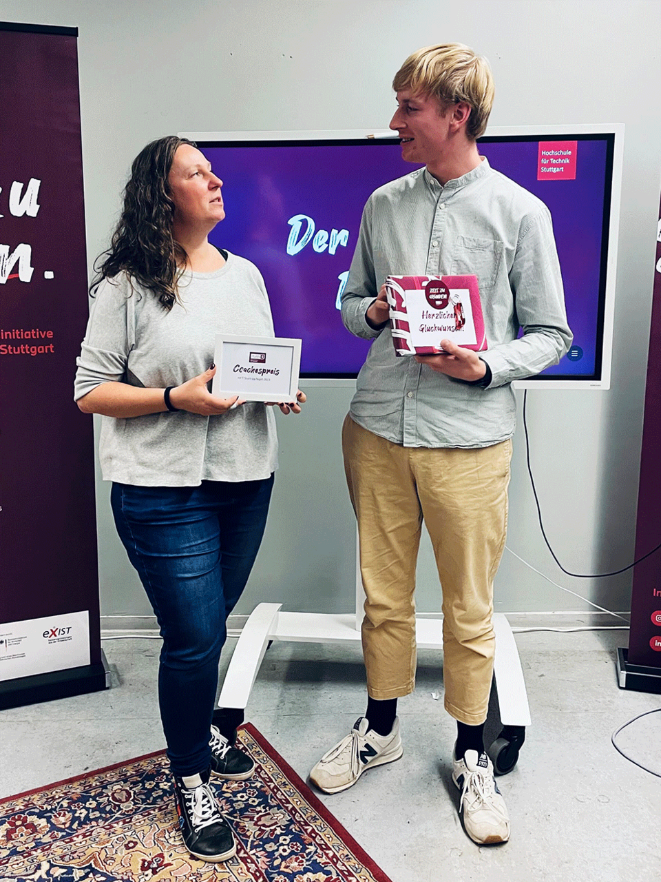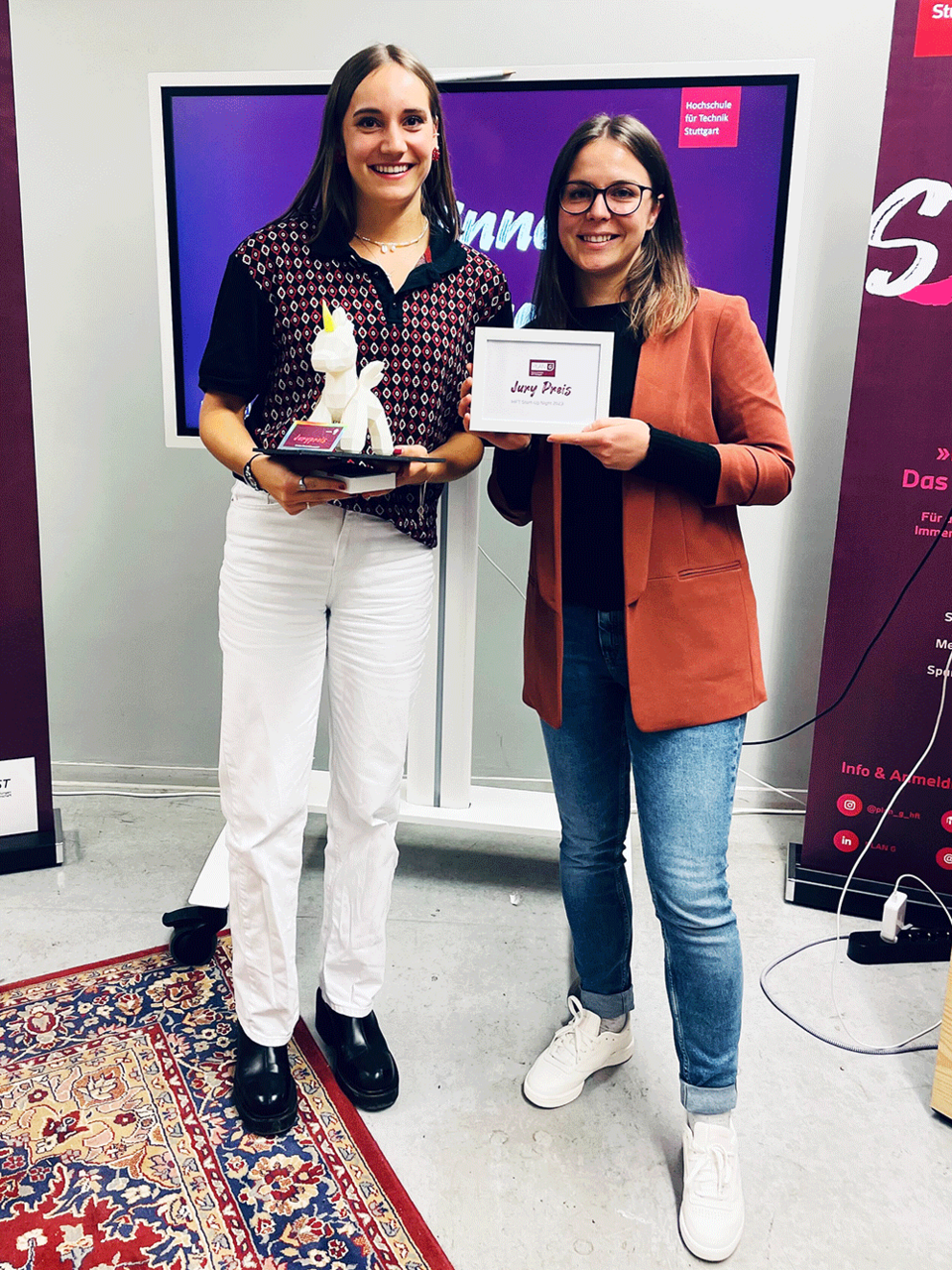 Der Jurypreis ging an das Tamara Deufel mit ihrem Start-up Ethithek, das sich mit der Integration von Pflegerobotik in den Alltag von Pflegeeinrichtungen beschäftigt. Aufgrund der hohen gesellschaftlichen Relevanz des Themas und die überzeugende Präsentation entschied die Jury sich für die Ethithek.