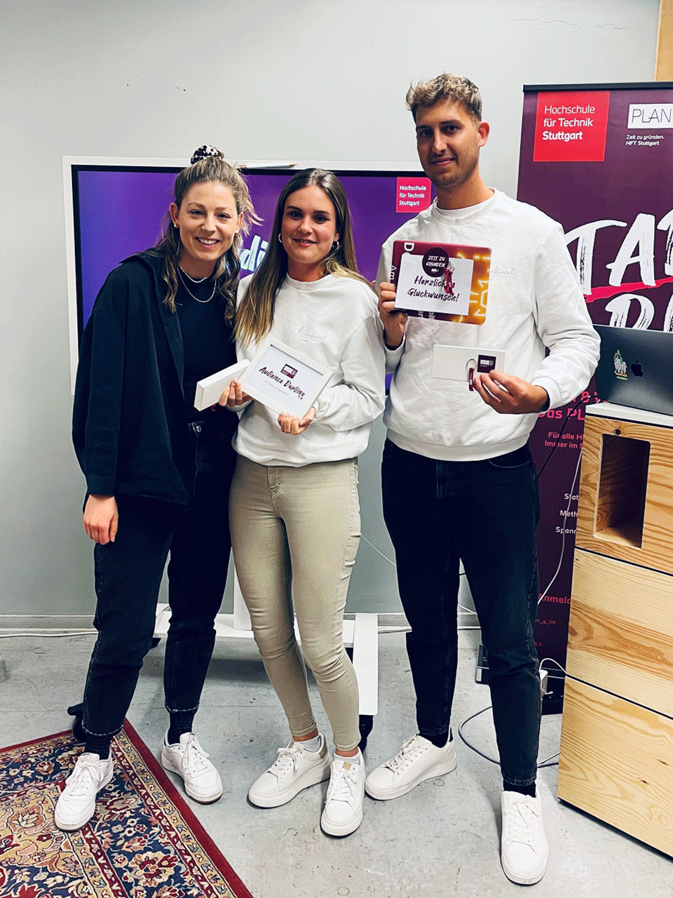 Die hochkarätige Jury, bestehend aus Prof. Dr. Patrick Planing (Leiter des Gründungszentrums), Janina Erb (Programm-Managerin bei ASAP BW – Gründermotor) und Sarina Hötzel (Co-Founder von Fünf Prozent), bewertete die Pitches.