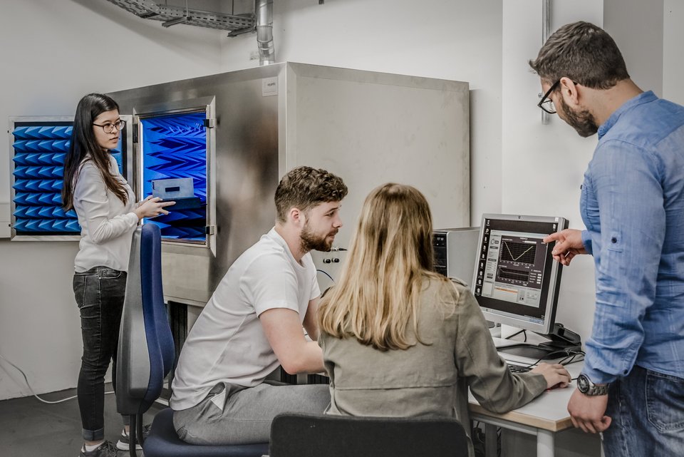 Mit Hilfe der industriellen RFID Messkammer haben die Studierenden die Möglichkeit RFID Transponder in einer idealen Umgebung zu untersuchen. Beispielsweise können sie die aufzubringende Energie messen, die benötigt wird um den Transponder drahtlos anzusprechen. Zudem können Lesereichweite und 360°-Profile der Transponder sehr aufschlussreich für das Verständnis von RFID für die Studierenden sein.