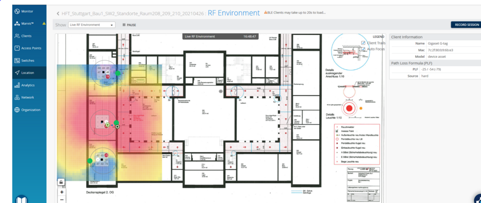 Echtzeit-Lokalisierung beschreibt die Bestimmung des Ortes eins identifizierten Objekts mit Hilfe von Funktechnologien. Den Studierenden wird zum einen die Möglichkeit bereitet mit den Impinj xArray Gateways bspw. einen Lagerbestand zu überwachen und/oder die Bewegung der einzelnen Artikel nachzuvollziehen und zum anderen mit den MIST WiFi- und BLE-Access-Points Bewegungsdaten von Nutzern, bspw. für die Raumauslastung inkl. Ballungszone (Hot Zone-Warnung) zu ermitteln. Da auch in der Industrie viele unterschiedliche Ortungstechnologien in Verwendung sind, wird den Studierenden mit Hilfe von Omlox zusätzlich ein Technologiestandard an die Hand gegeben, der die gewonnen Daten auf einen Nenner bringt und miteinander verknüpft.