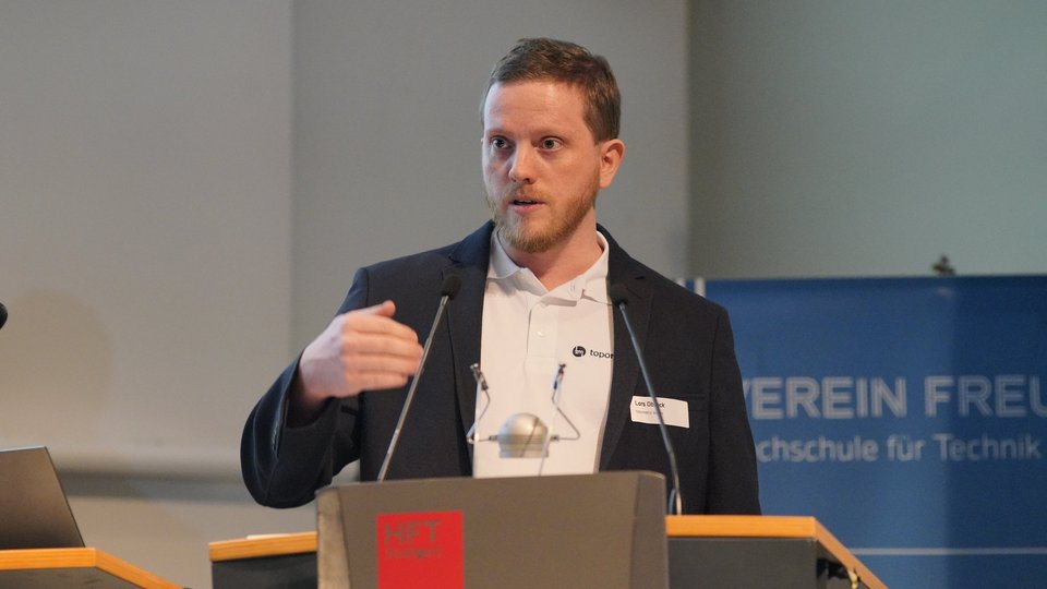 Stefan Findeis (Topometric) legte dar, wie das Unternehmen hoch automatisierte Photogrammetrie-Systeme für die Qualitätssicherung in industriellen Produktionsanlagen – z. T. auch inline – zum Einsatz bringt.