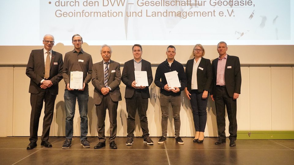 Vermittlung von Knowhow und Networking standen beim 14. Vermessungsingenieurtag / 7. Geodätentag am 10. November im Fokus. Prof. Dr. Eberhard Gülch und sein Team hatten für die rund 150 Gäste erneut zahlreiche Fachvorträge zum Thema ‚Photogrammetrie und Fernerkundung‘ sowie UAV- und Nahbereichs-Photogrammetrie organisiert. Dazu gehörten auch die Antritts-Vorlesungen von Honorarprofessor Prof. Dr. Thomas Esch und von Prof. Dr. Alexander Beetz. Neues aus der Fachgruppe Vermessung berichtete Prodekan Prof. Dr. Dietrich Schröder. Zudem wurden die BDB- und DVW-Preise durch Peter Aichinger (BDB) und Susanne Krüger (DVW) verliehen: Geehrt wurden Marcus Fiala mit dem BDB-Preis sowie Niko Majowski und Benjamin Jesse (beide mit dem DVW-Preis).