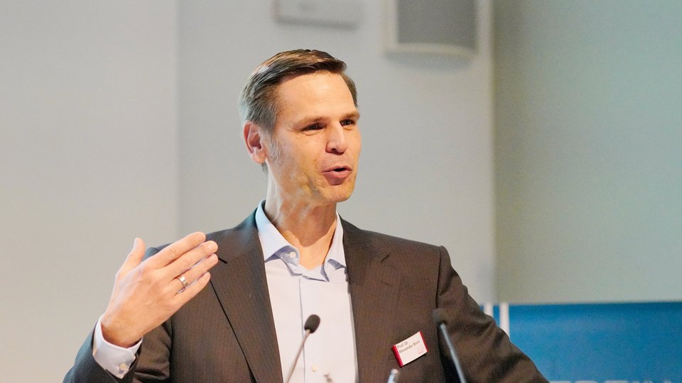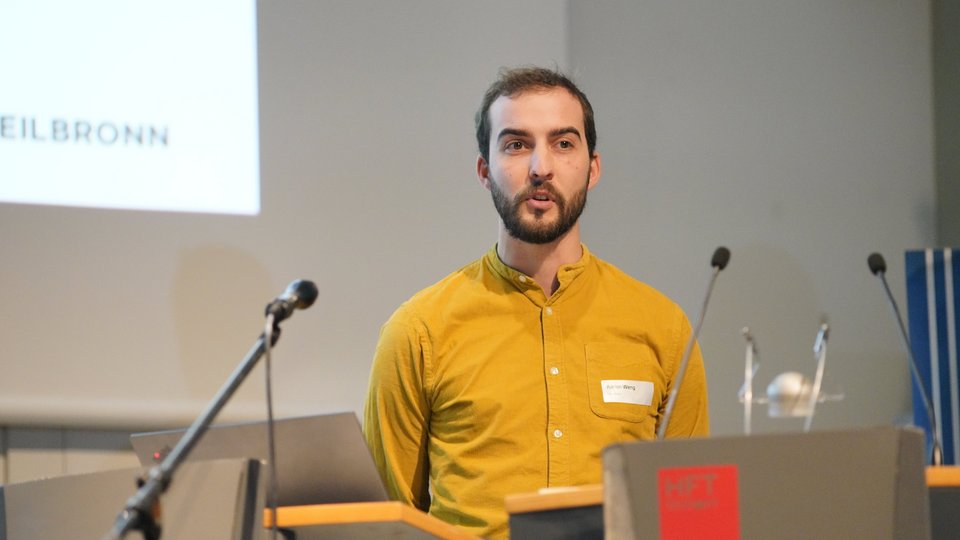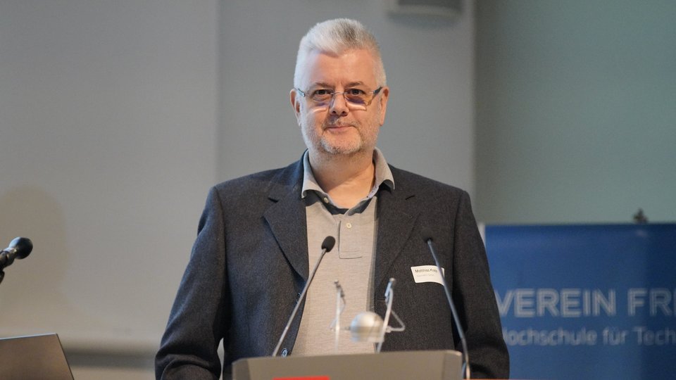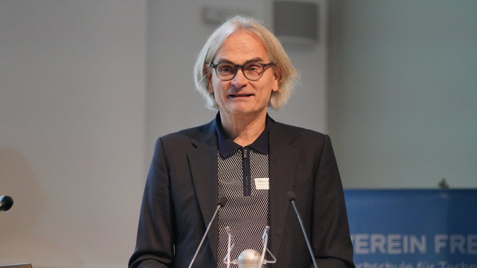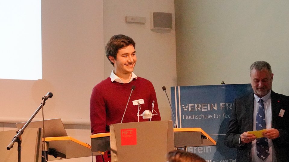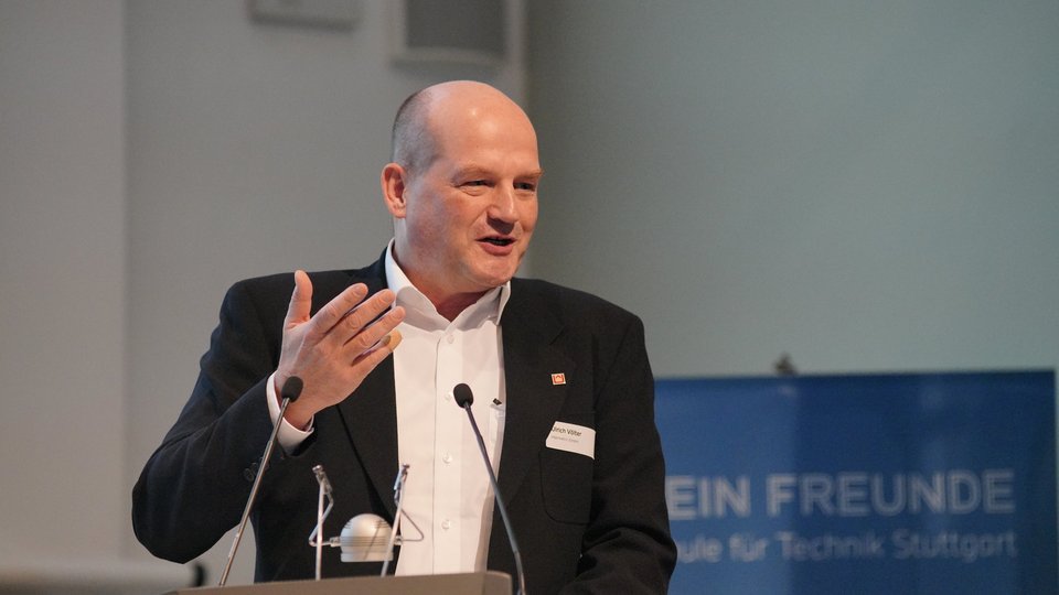 Ulrich Völter vom Verein Freunde der HFT Stuttgart stellte die Arbeit des Vereins vor. „Bildung zu fördern, ist unser Hauptanliegen“, so Völter. Der Verein unterstützt mit Stipendien, Wettbewerben und Veranstaltungs-Support.