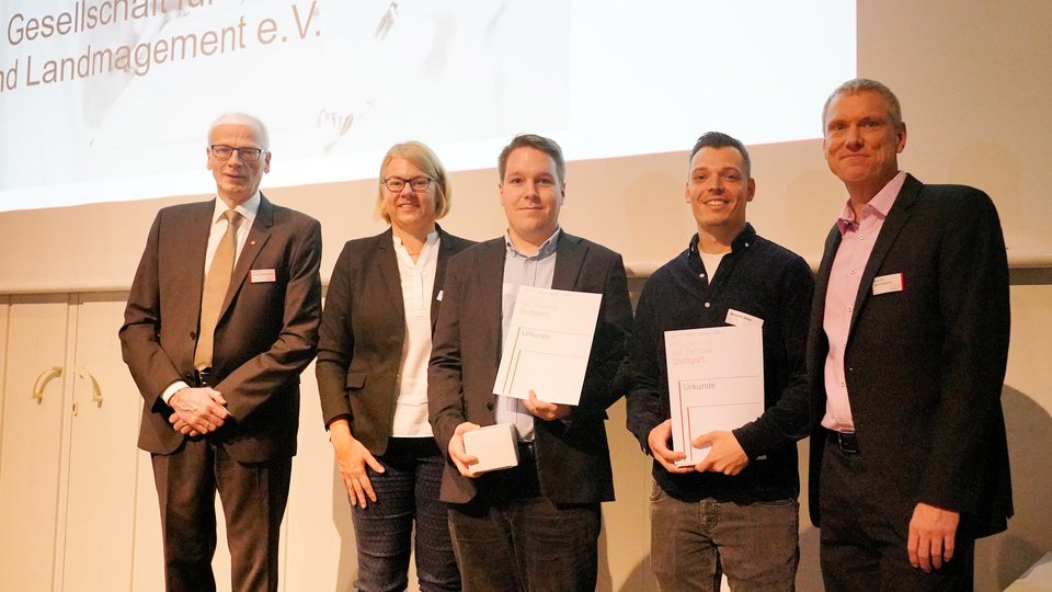 Adrian Weng und Tobias Fischer (beide Landratsamt Heilbronn) zeigten, wie sie aktuelle photogrammetrische Workflows im Vermessungsamt nutzen: Weng verschnitt ein historisches Geländemodell auf Basis historischer Luftbilder mit einem aktuellen digitalen Geländemodell und konnte so u. a. ein 87.500 m² großes Hangrutschungsgebiet sowie dessen Abrutschkante bei Ebersbach identifizieren. Fischer verglich die terrestrische Geländeaufnahme und die UAV-Befliegung zur Volumenbestimmung von Erddeponien.