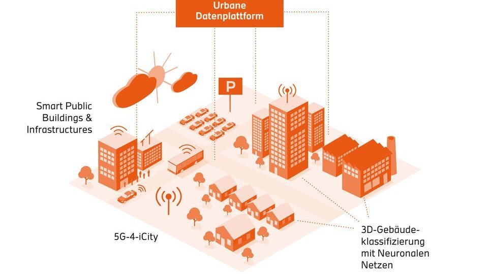 In dem neuen Forschungsprojekt iCity werden in einigen Impulsprojekten unter anderem Sensordaten in Gebäuden und Städten erfasst, aufbereitet und analysiert. Dies soll zur wirtschaftlichen und energetischen Effizienzsteigerung von gewerblich und industriell genutzten Gebäuden und städtischen Infrastrukturen führen. Für die Vernetzung von Sensoren und Datenplattformen spielen neue Kommunikationsnetze wie LoRaWAN und 5G eine wichtige Rolle. In dem Impulsprojekt Ensim4iCity: Energiemanagement und urbane Simulation werden unter anderem Potenziale und Eignung von bisher nur im Smart-Home-Bereich verwendeten, dezentralen kabellosen Sensoren und Aktoren untersucht. Das Impulsprojekt ICT4iCity: Informationsplattform und IKT untersucht unter anderem folgende Fragestellungen: Wie können die heterogenen Datenbestände einer Stadt einheitlich über offene Schnittstellen und Standards bereitgestellt werden? Welches Potential haben neue Kommunikationsnetze wie LoRaWAN und 5G für den Einsatz in Gebäuden und Städten? Wie können neue Methoden wie Deep Learning dazu beitragen, das steigende Datenaufkommen sinnvoll auszuwerten? Und nicht zuletzt, wie können die in der Stadt und ihren Gebäuden erhobenen Daten für eine bessere Nutzung öffentlicher Ressourcen, etwa durch neue Services für Bürger:innen, eingesetzt werden?