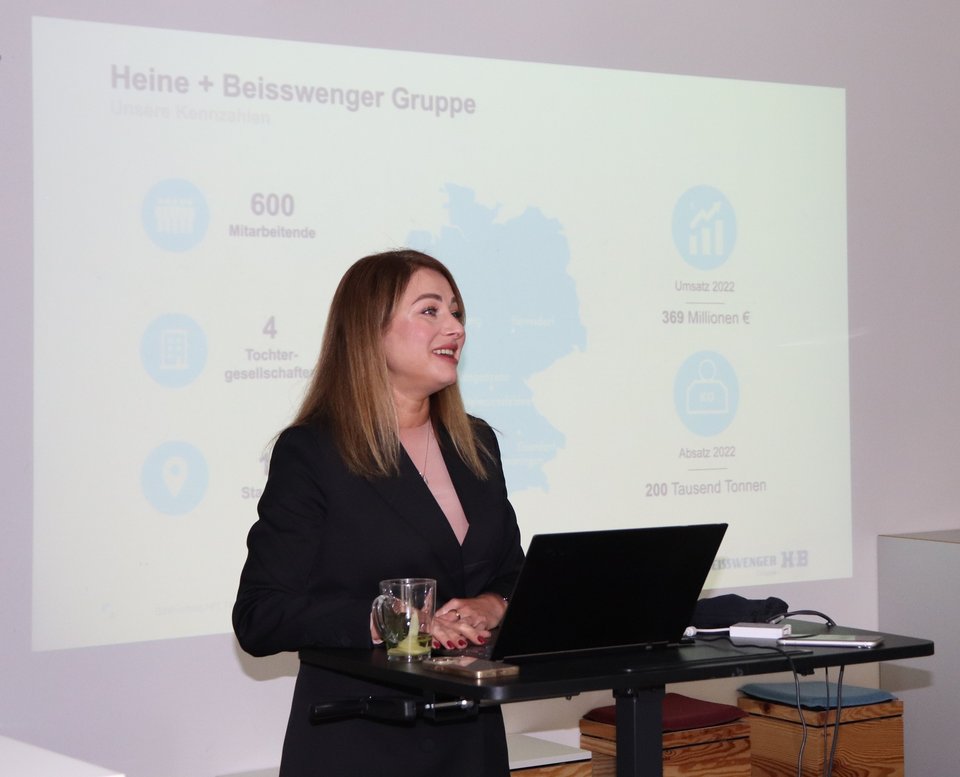 Außerdem berichtete Frau Demchenko, dass die Stahlindustrie aktuell besonders unter Veränderungsdruck stehe, einerseits durch technologische Veränderungen und Digitalisierung, andererseits durch die wachsende Bedeutung der Nachhaltigkeits-Thematik. Hierbei wurden dann Projekte von Heine+Beisswenger z.B. in den Bereichen Energieeffizienz, Logistik sowie erste grüne Stahl-Partnerschaften mit gemeinsamen Maßnahmen zur CO2-Einsparung entlang der Wertschöpfungskette besprochen.